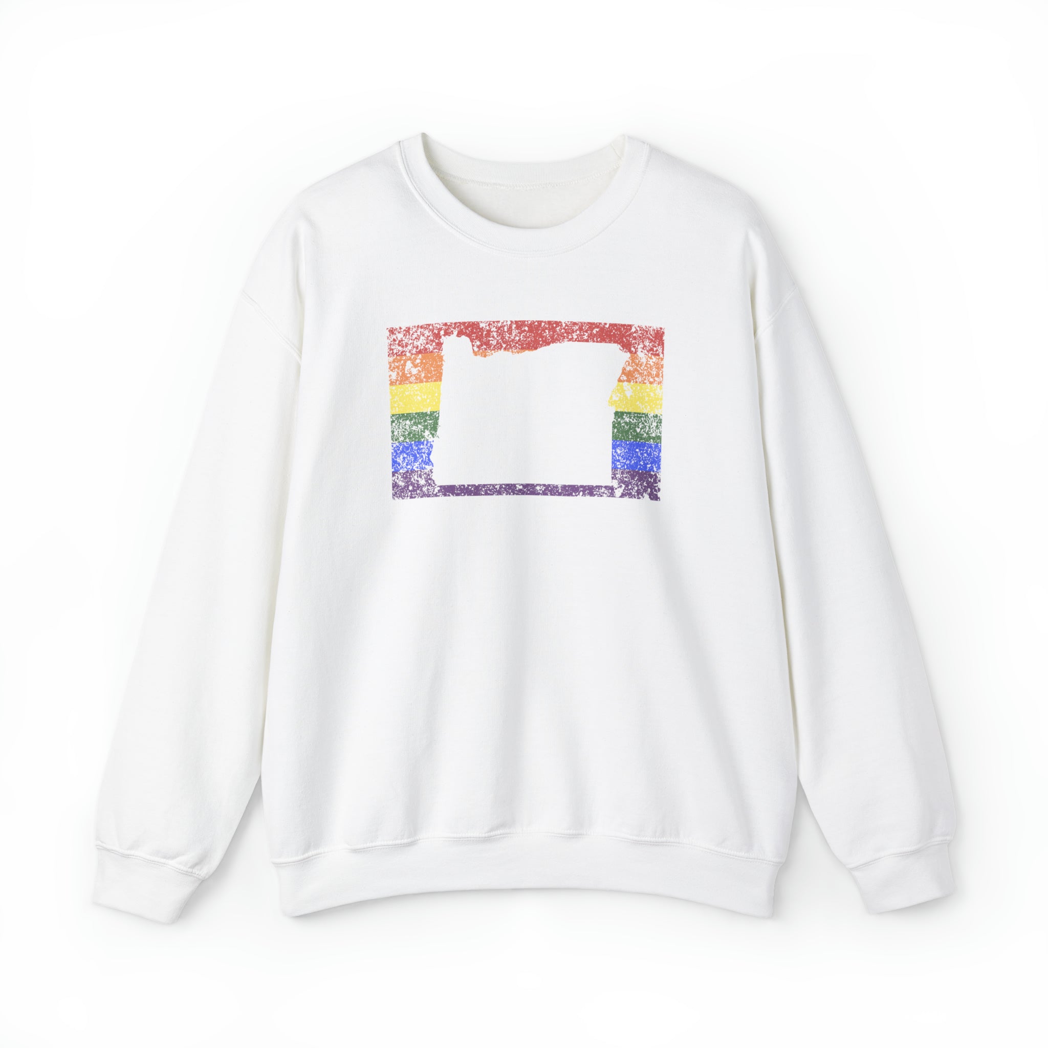 Oregon Pride Flag Sweater: Rainbow LGBTQ+ State Silhouette Distressed Sweatshirt