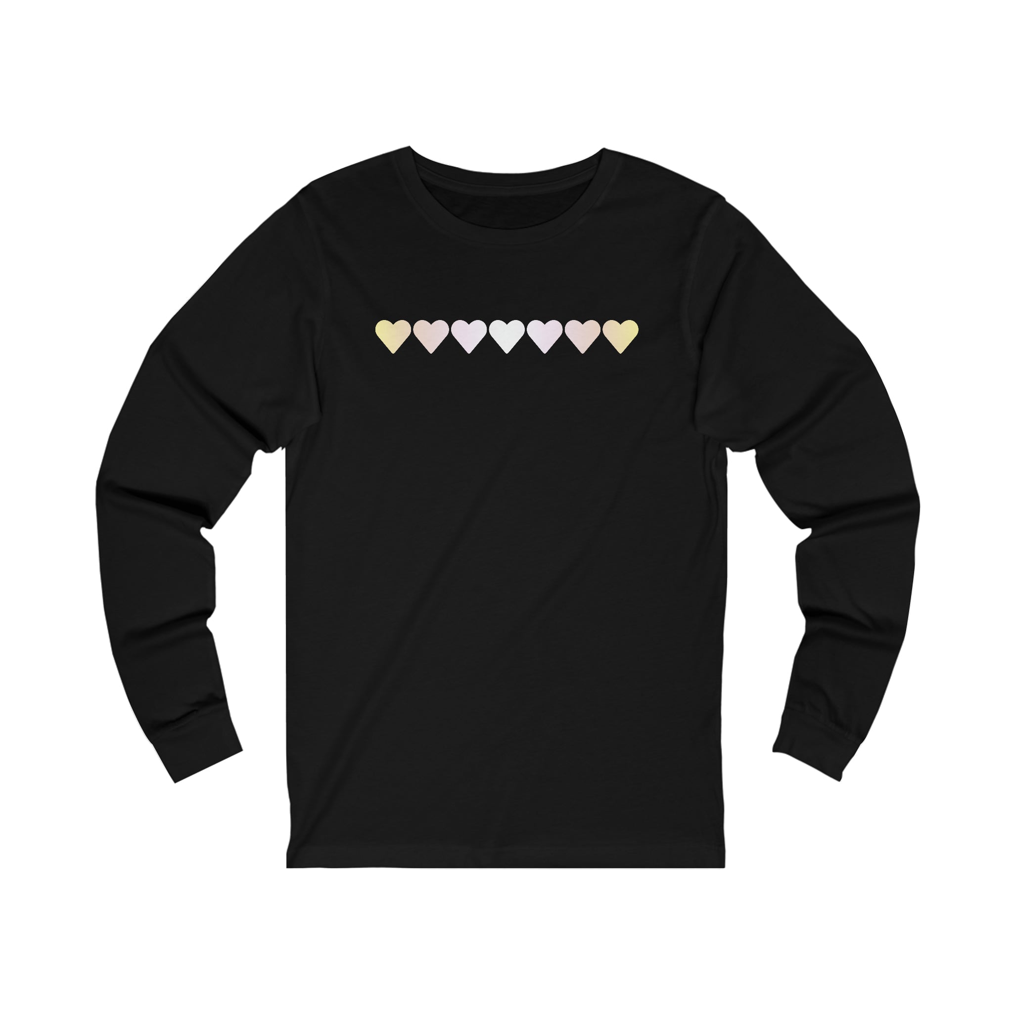 Pangender Flag Hearts Long Sleeve Tee: Pride LGBTQ+ Gradient Design