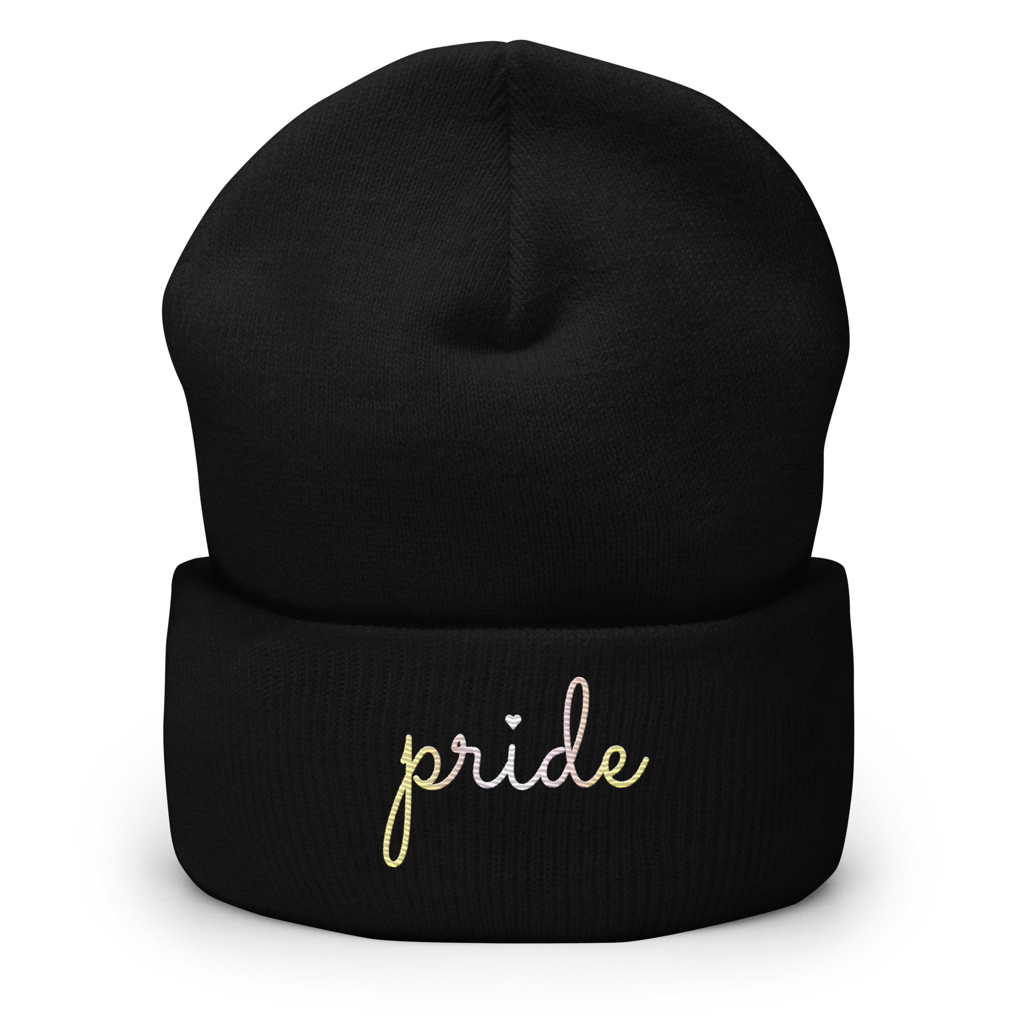 Pangender Pride Beanie: Cursive 'Pride' in Gradient Colors