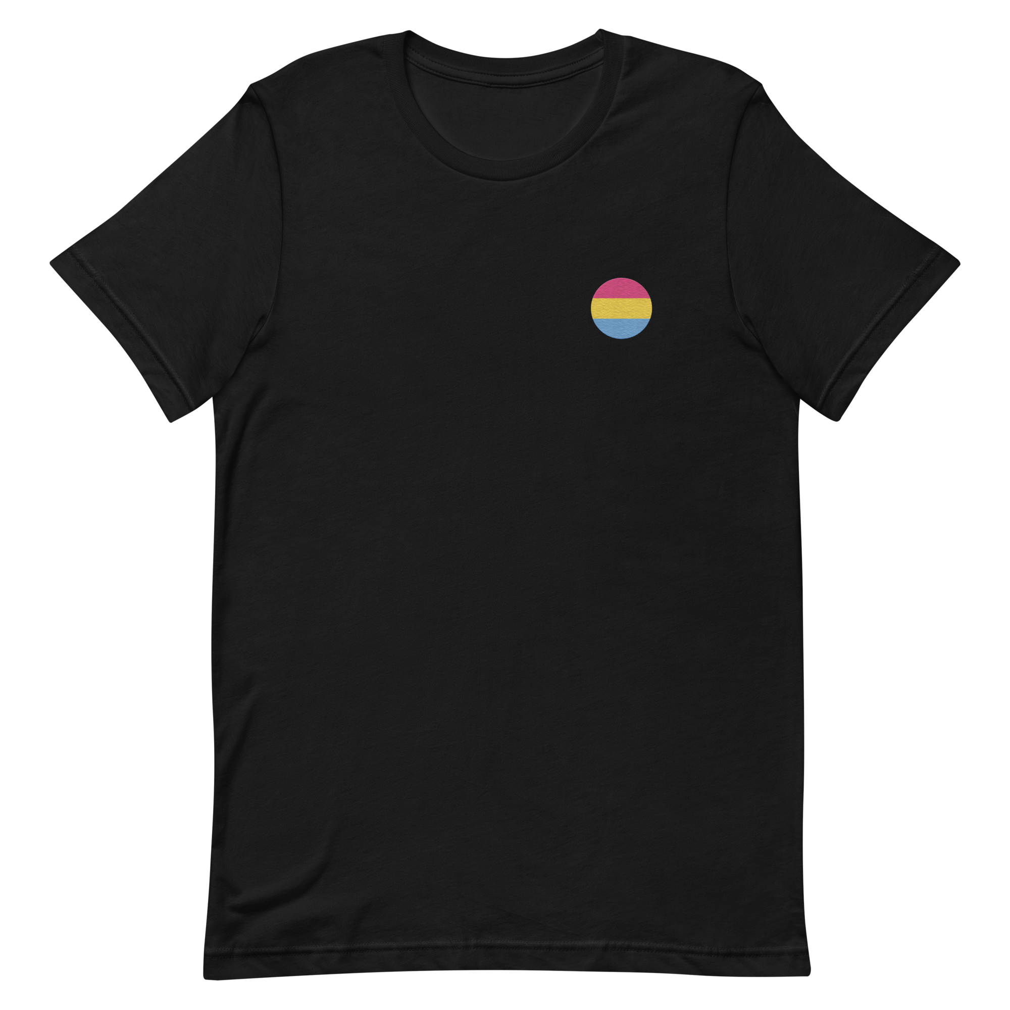 Pansexual Flag Embroidered Circle Tee: Celebratory LGBTQ+ Pride Design