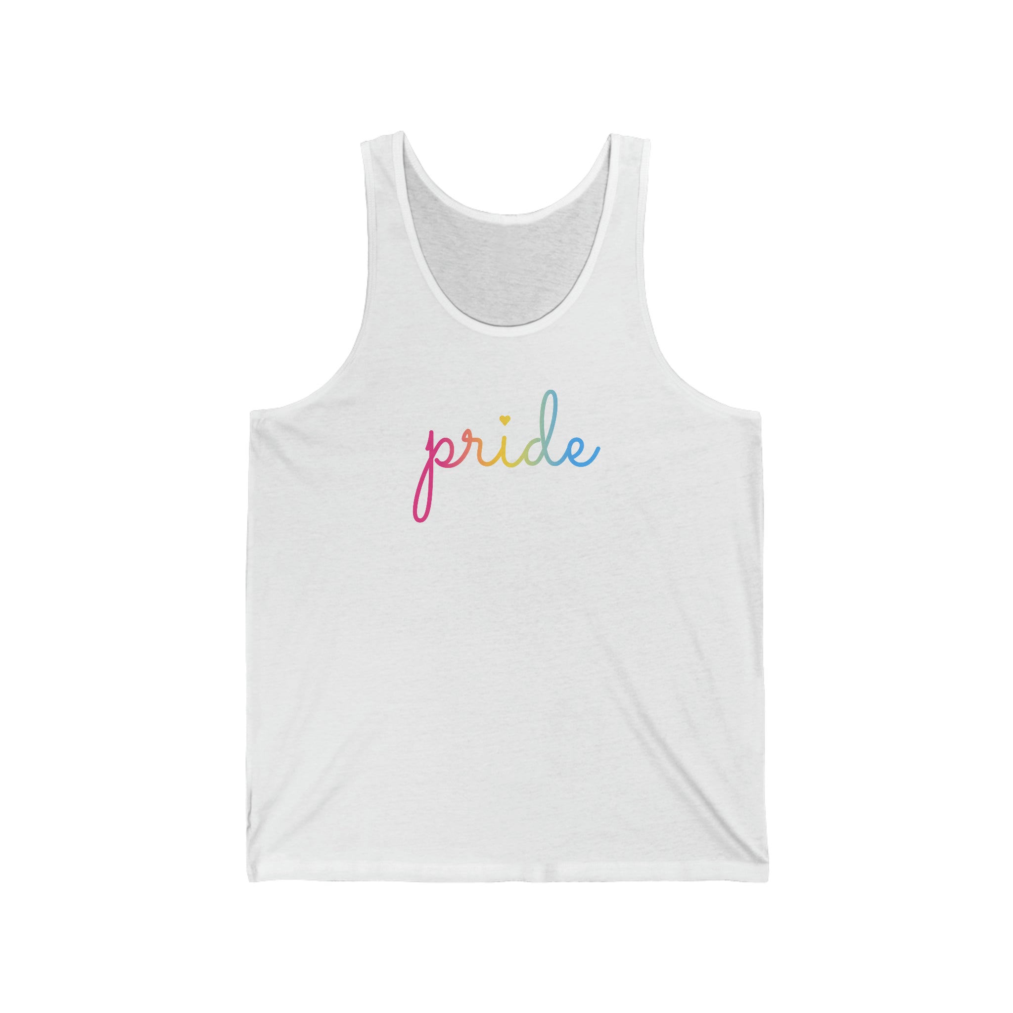Pansexual Pride Tank-Top: Flowing Cursive 'Pride' in Gradient Hues