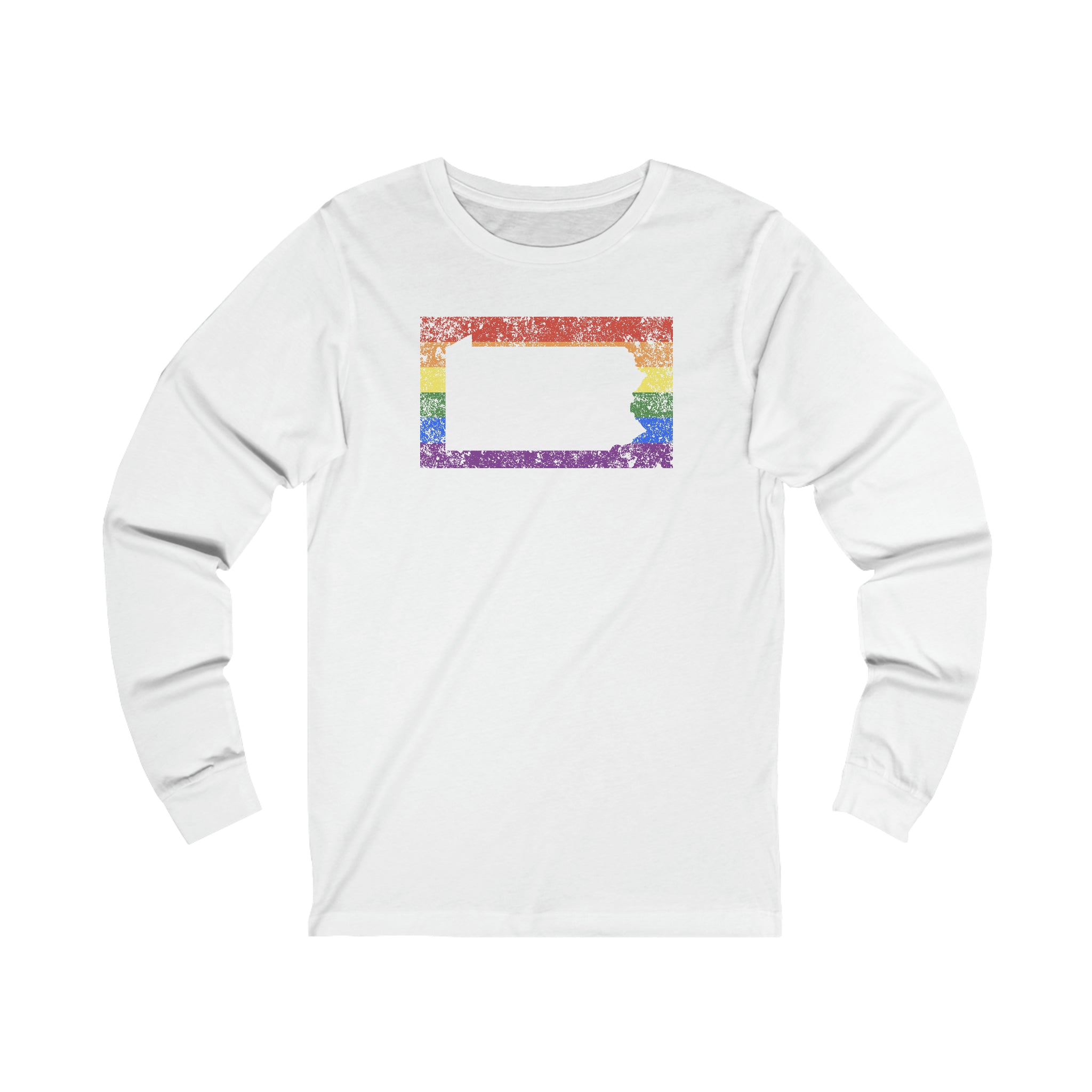 Pennsylvania Pride Flag Long Sleeve Tee: Rainbow LGBTQ+ State Silhouette Distressed Long Sleeve T-Shirt