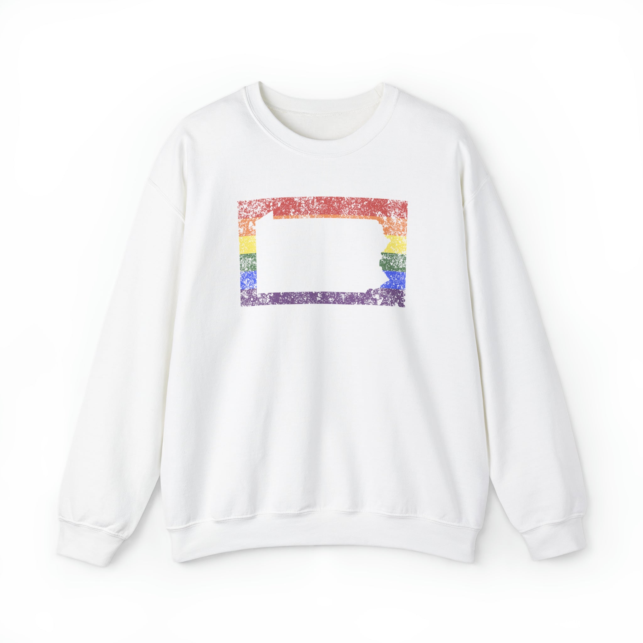 Pennsylvania Pride Flag Sweater: Rainbow LGBTQ+ State Silhouette Distressed Sweatshirt