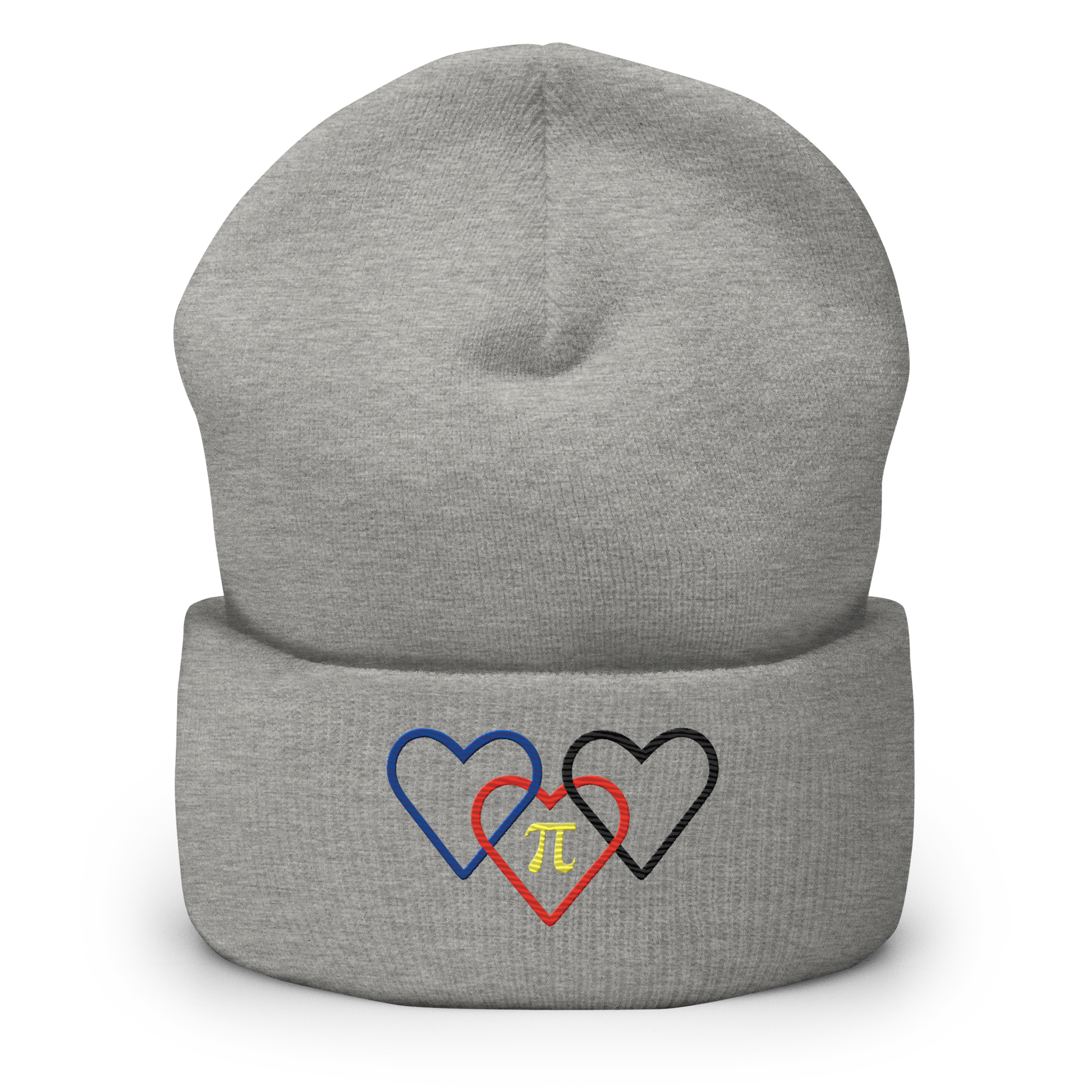 Polyamory Pride Beanie: Interlaced Heart Outlines Embroidered Hat