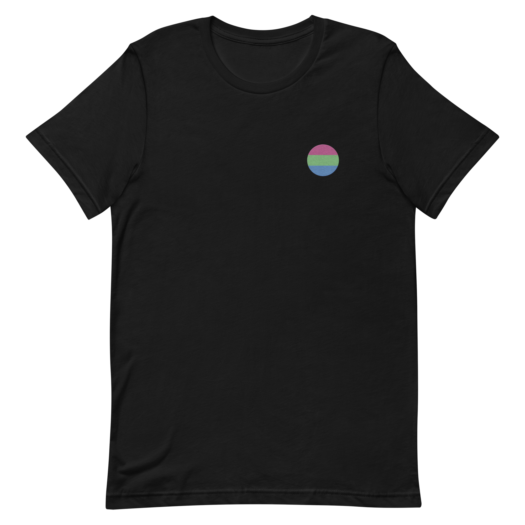 Polysexual Flag Embroidered Circle Tee: Celebratory LGBTQ+ Pride Design