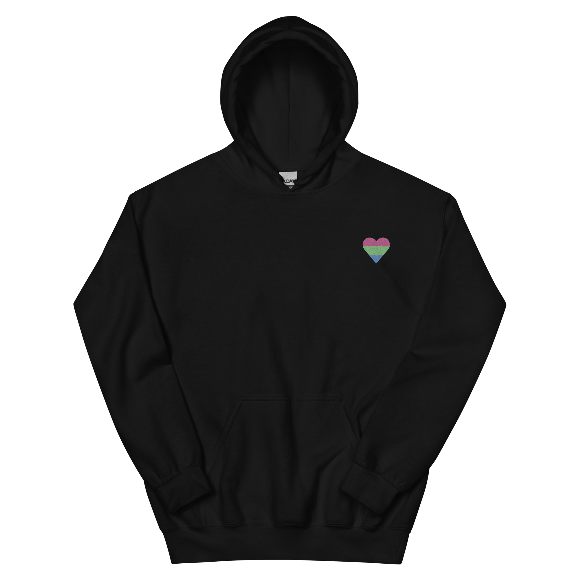 Polysexual Flag Embroidered Heart Hoodie: Celebratory LGBTQ+ Pride Design