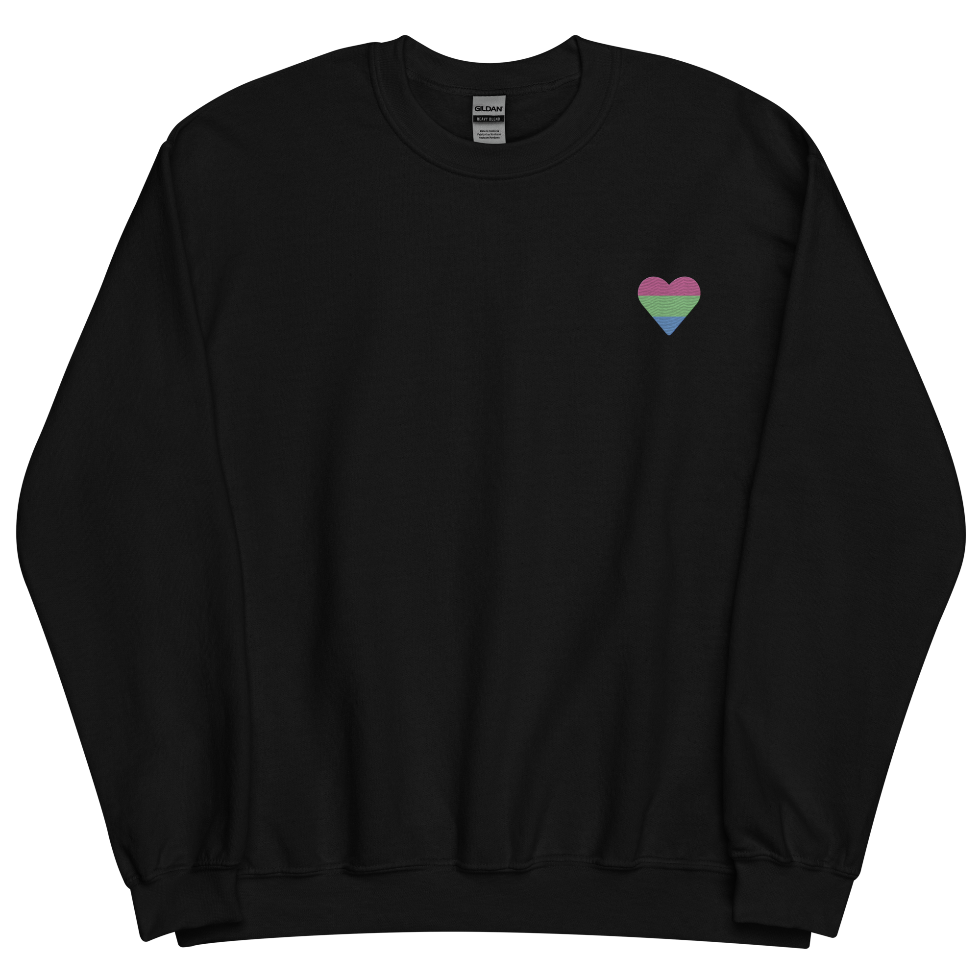 Polysexual Flag Embroidered Heart Sweater: Celebratory LGBTQ+ Pride Design