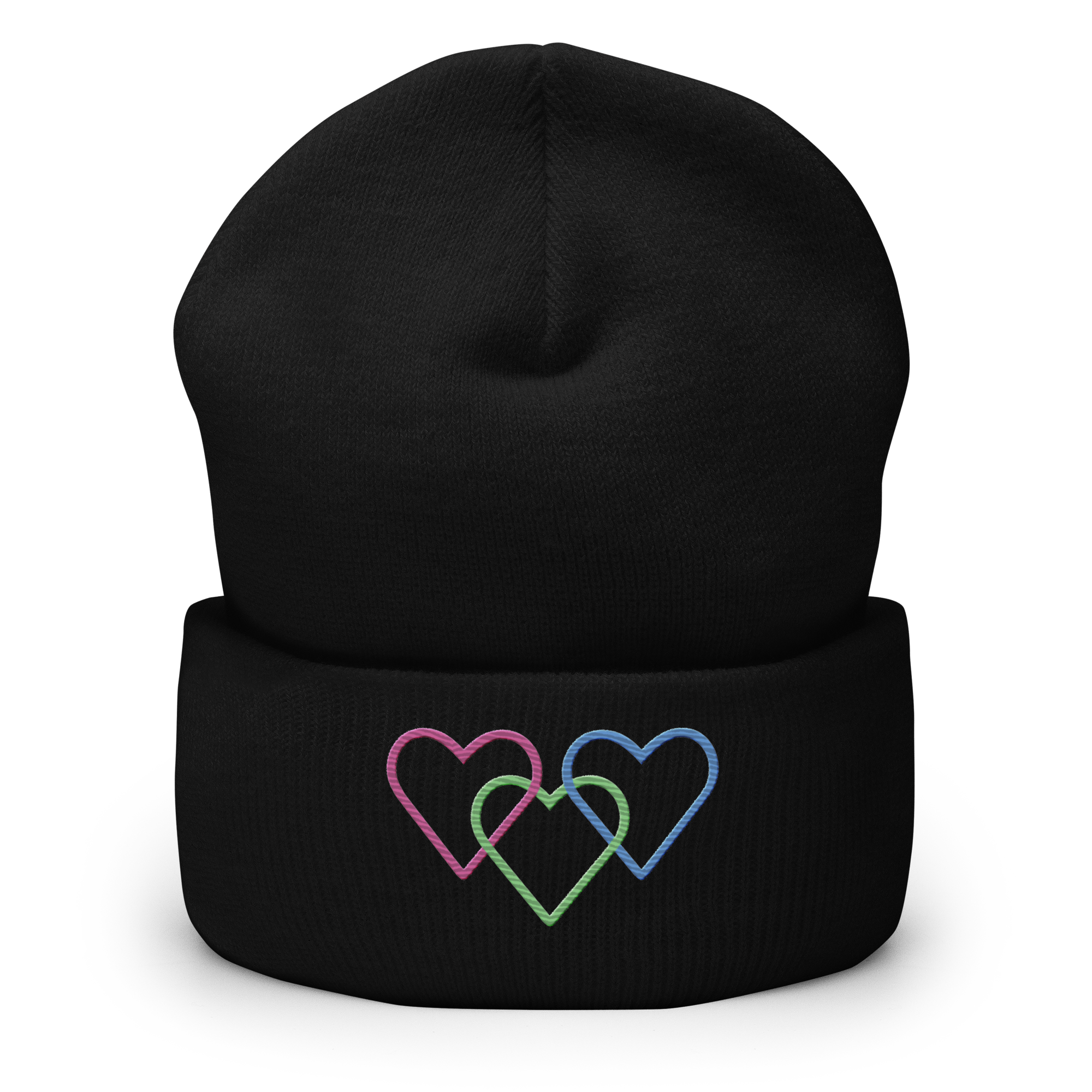 Polysexual Pride Beanie: Interlaced Heart Outlines Embroidered Hat