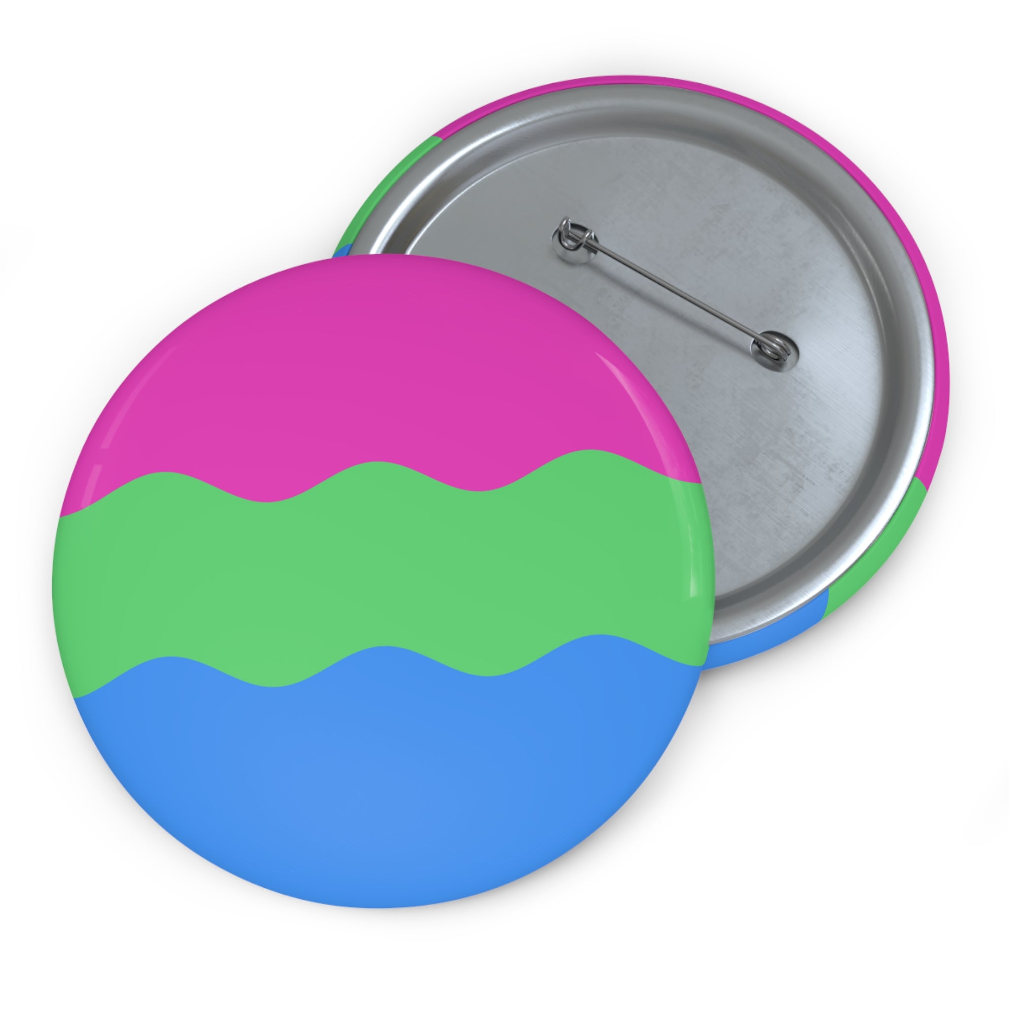 Polysexual Pride Flag Pin: Round Button with Wavey Design