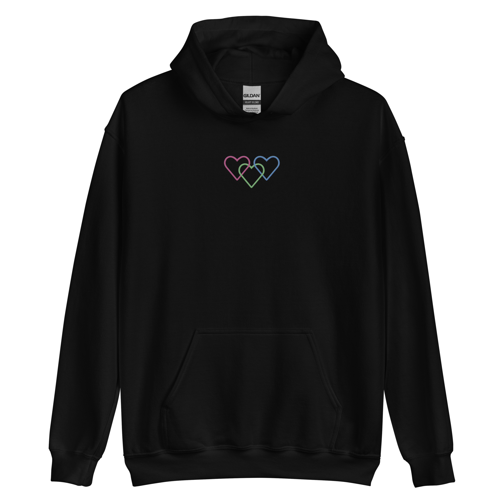 Polysexual Pride Hoodie: Interlaced Heart Outlines Embroidered Sweatshirt