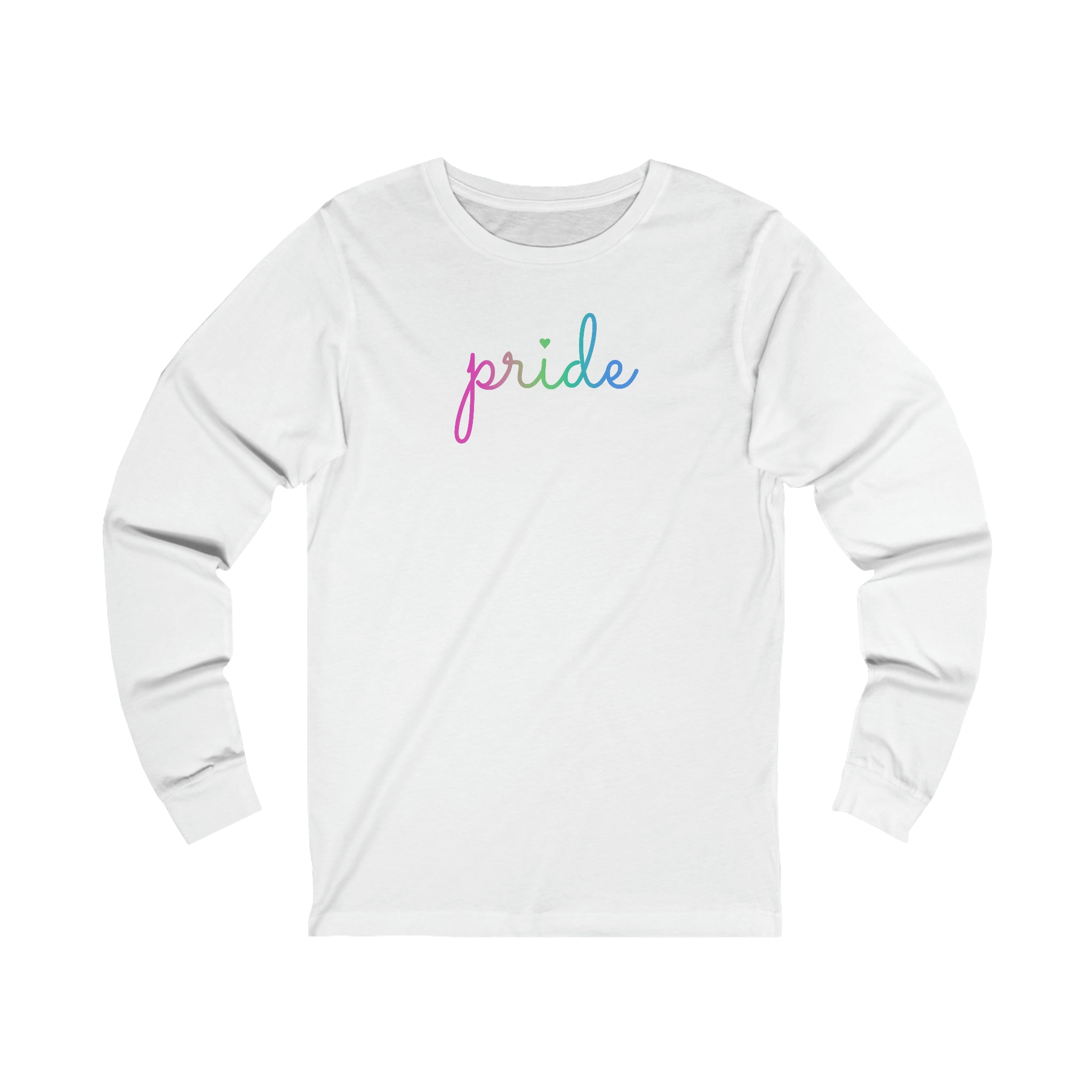 Polysexual Pride Long Sleeve T-Shirt: Flowing Cursive 'Pride' in Gradient Hues