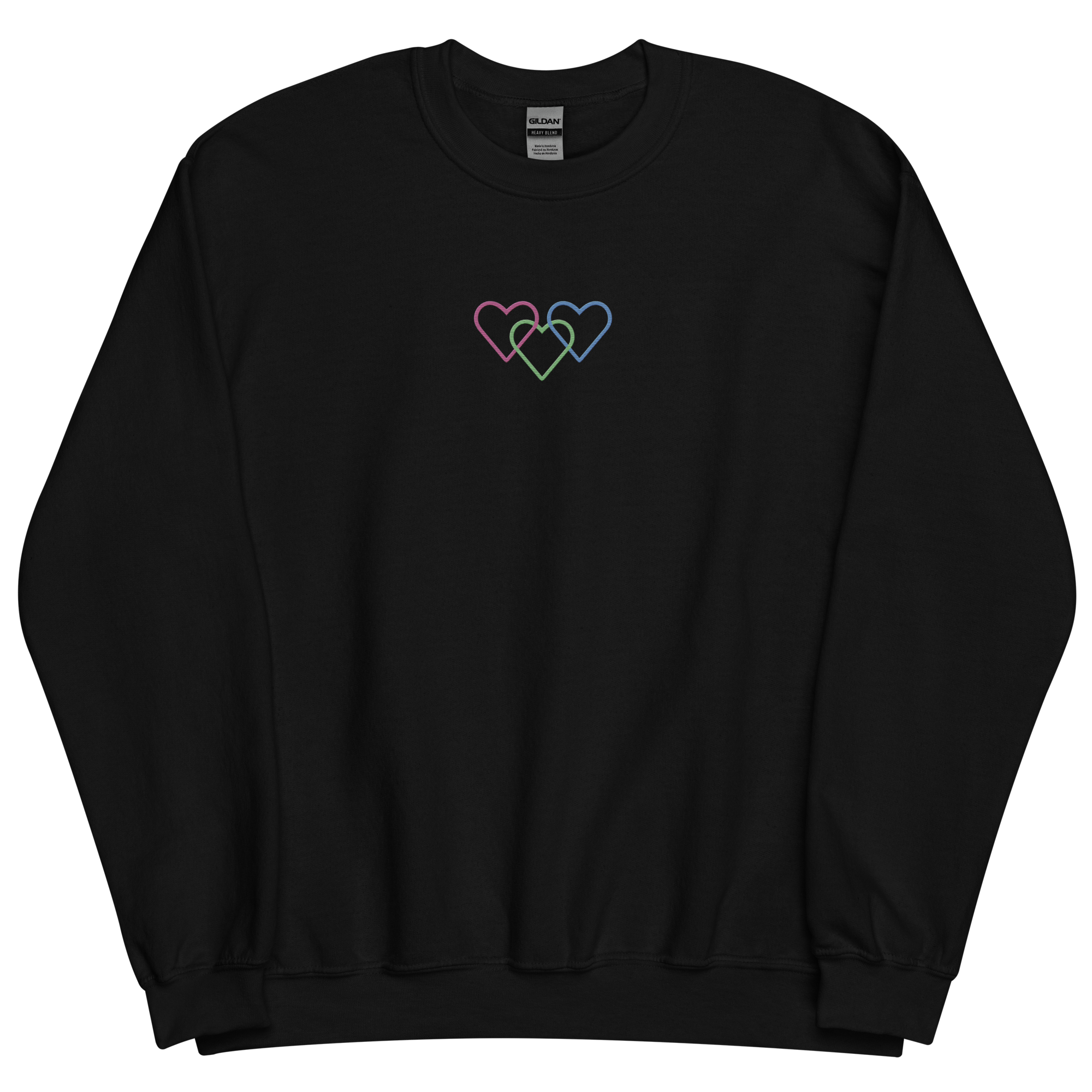 Polysexual Pride Sweatshirt: Interlaced Heart Outlines Embroidered Sweater