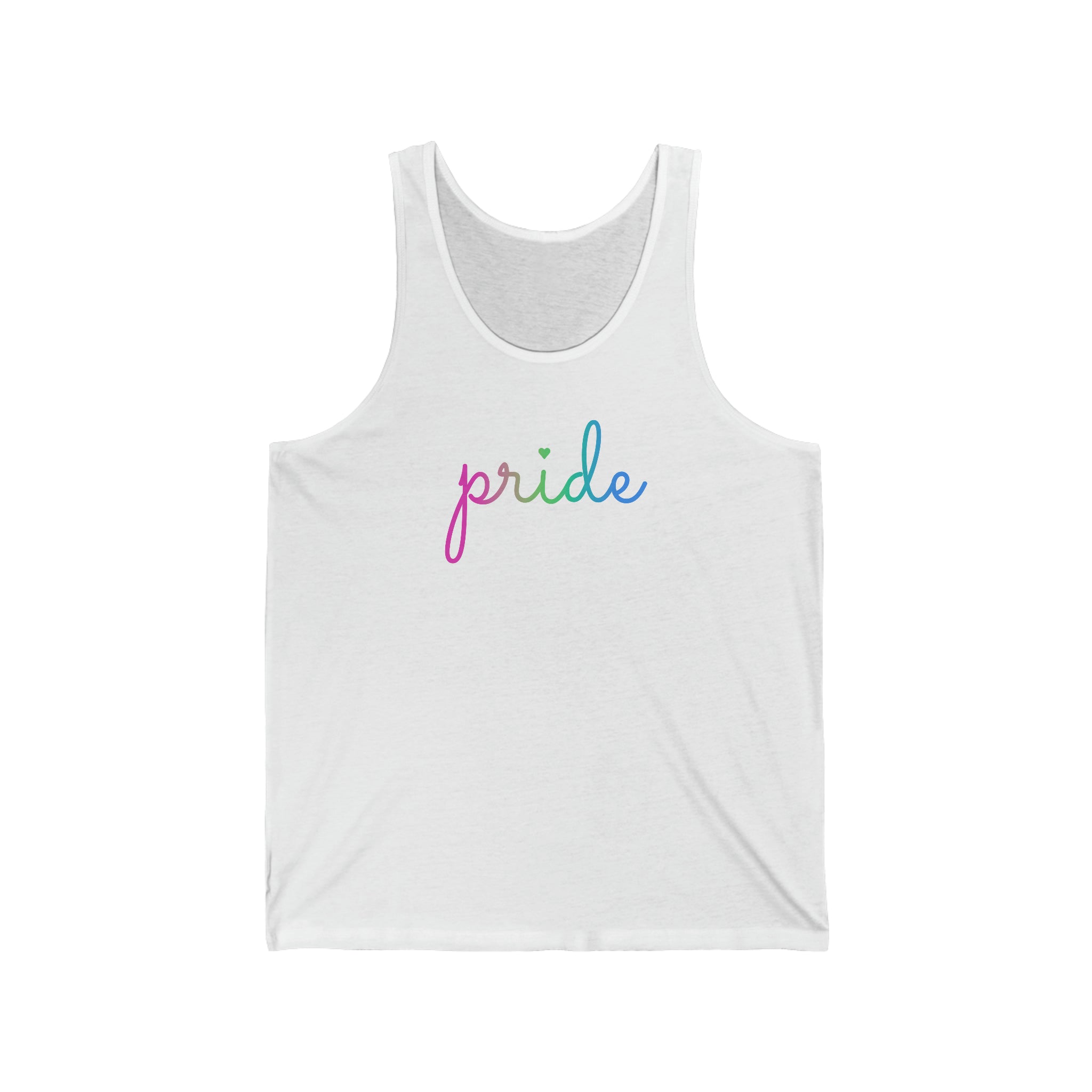 Polysexual Pride Tank-Top: Flowing Cursive 'Pride' in Gradient Hues