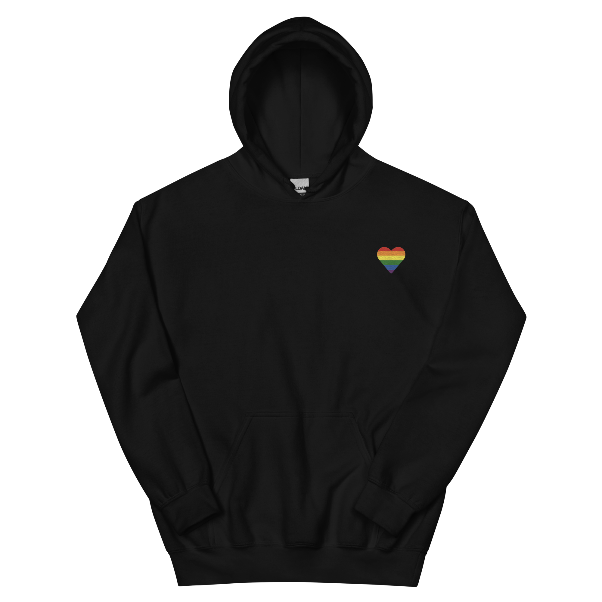 Pride Flag Embroidered Heart Hoodie: Celebratory LGBTQ+ Pride Design