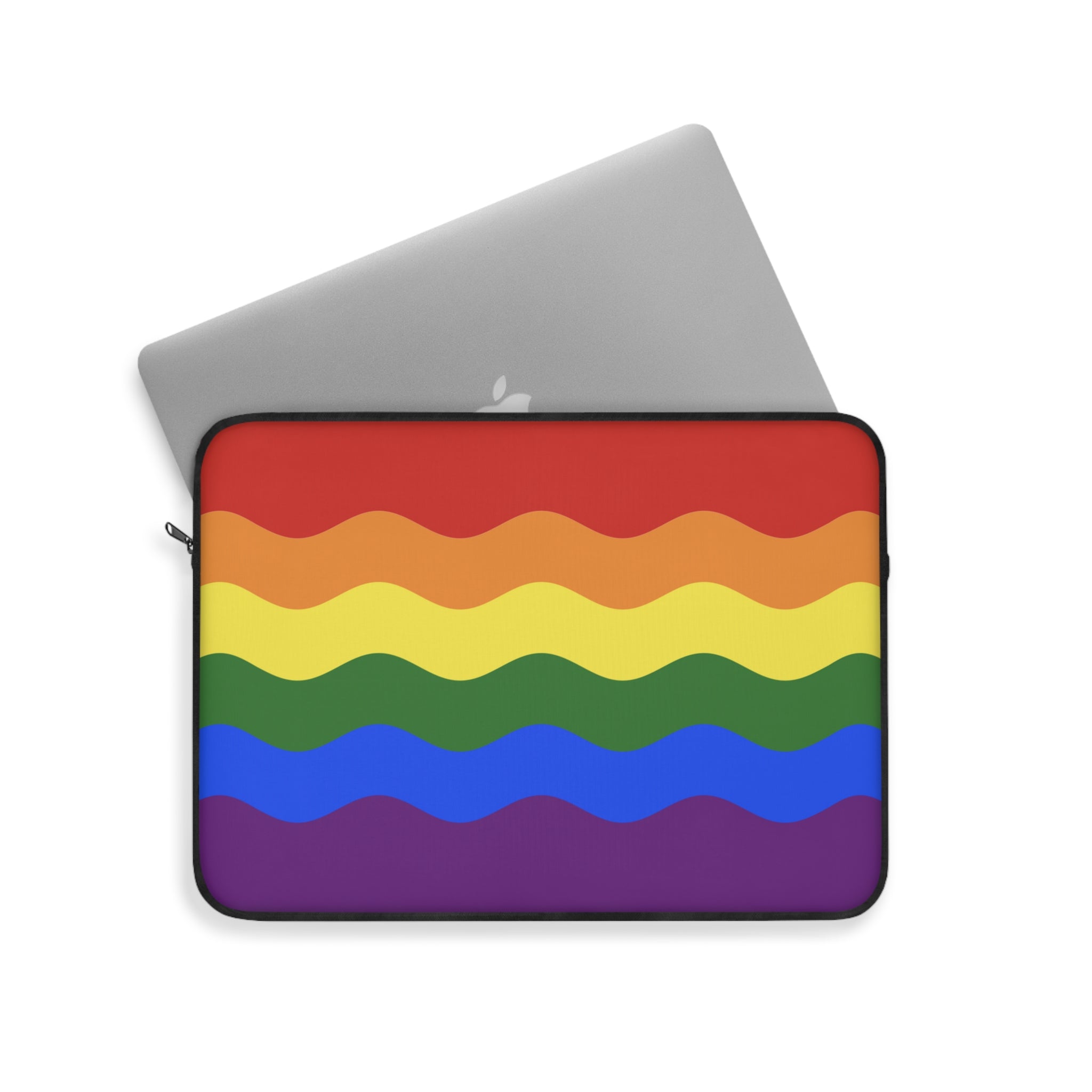 Safeguard your laptop in style with our Pride Ripple Laptop Sleeve. This sleeve showcases the Pride Flag in a captivating unique design, blending protection with pride. It's not just a laptop case; it's a statement of identity. The ripple pattern adds a unique touch to the traditional pride flag colors, making it a standout accessory for work, school, or daily use. Crafted for durability and ease of use, our sleeve ensures your laptop stays protected while reflecting your pride. Ideal for anyone who wants to add a splash of color and a message of solidarity to their tech gear. Show your support for the LGBTQ+ community with this practical and vibrant laptop sleeve.