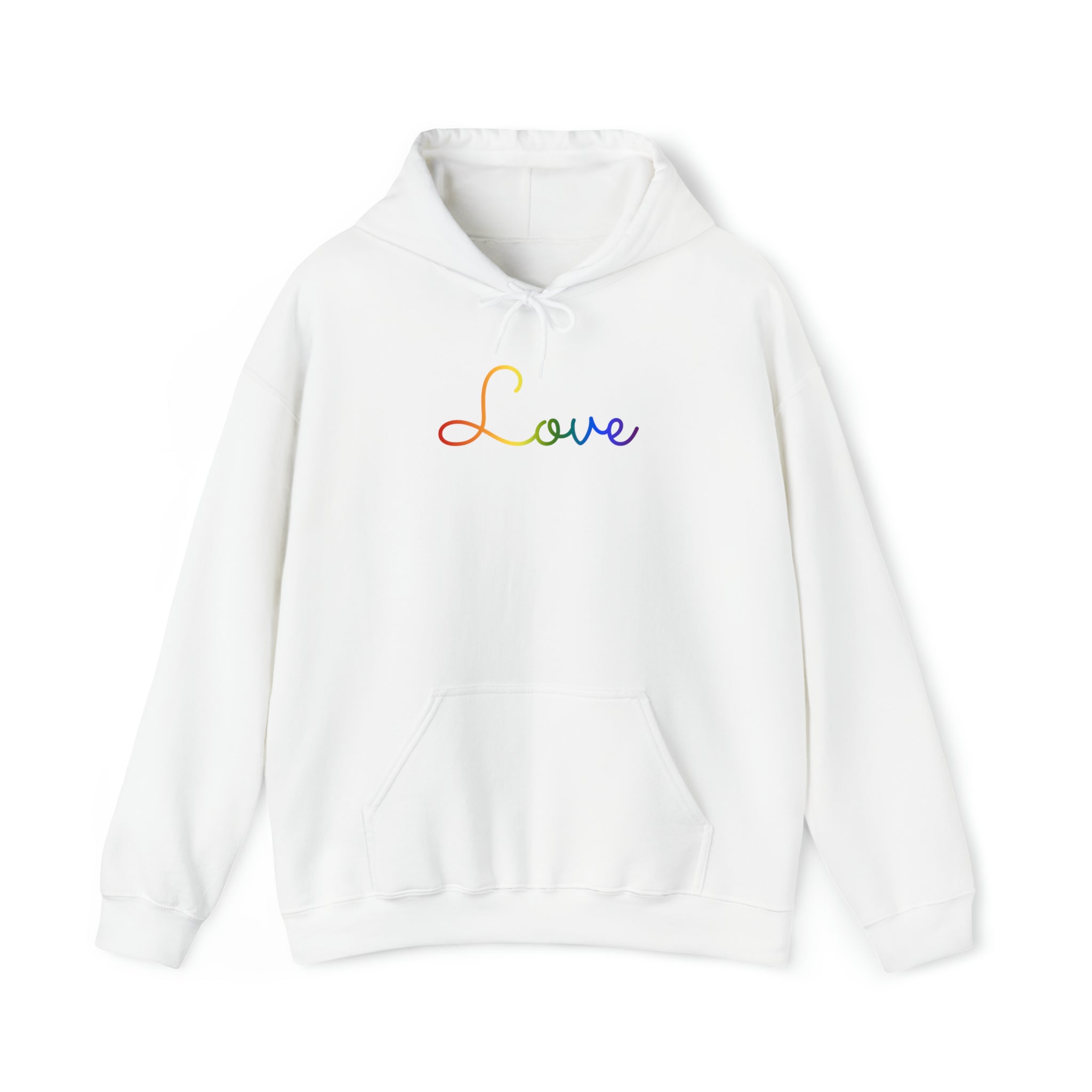 Pride Flag Love Script Hoodie: Subtly Elegant Pride Sweatshirt