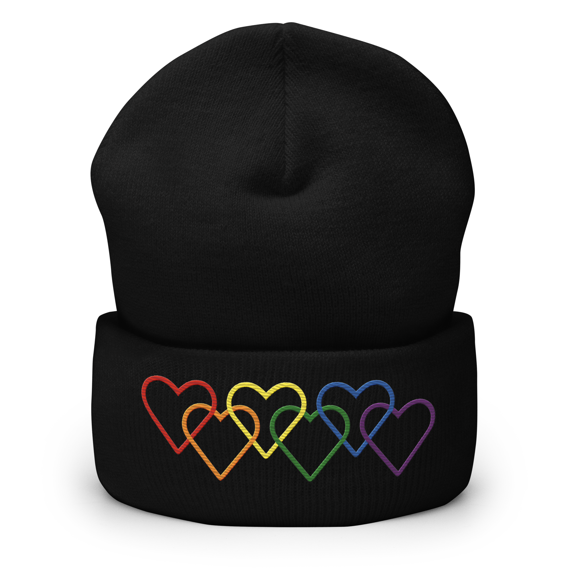 Pride Beanie: Interlaced Heart Outlines Embroidered Hat