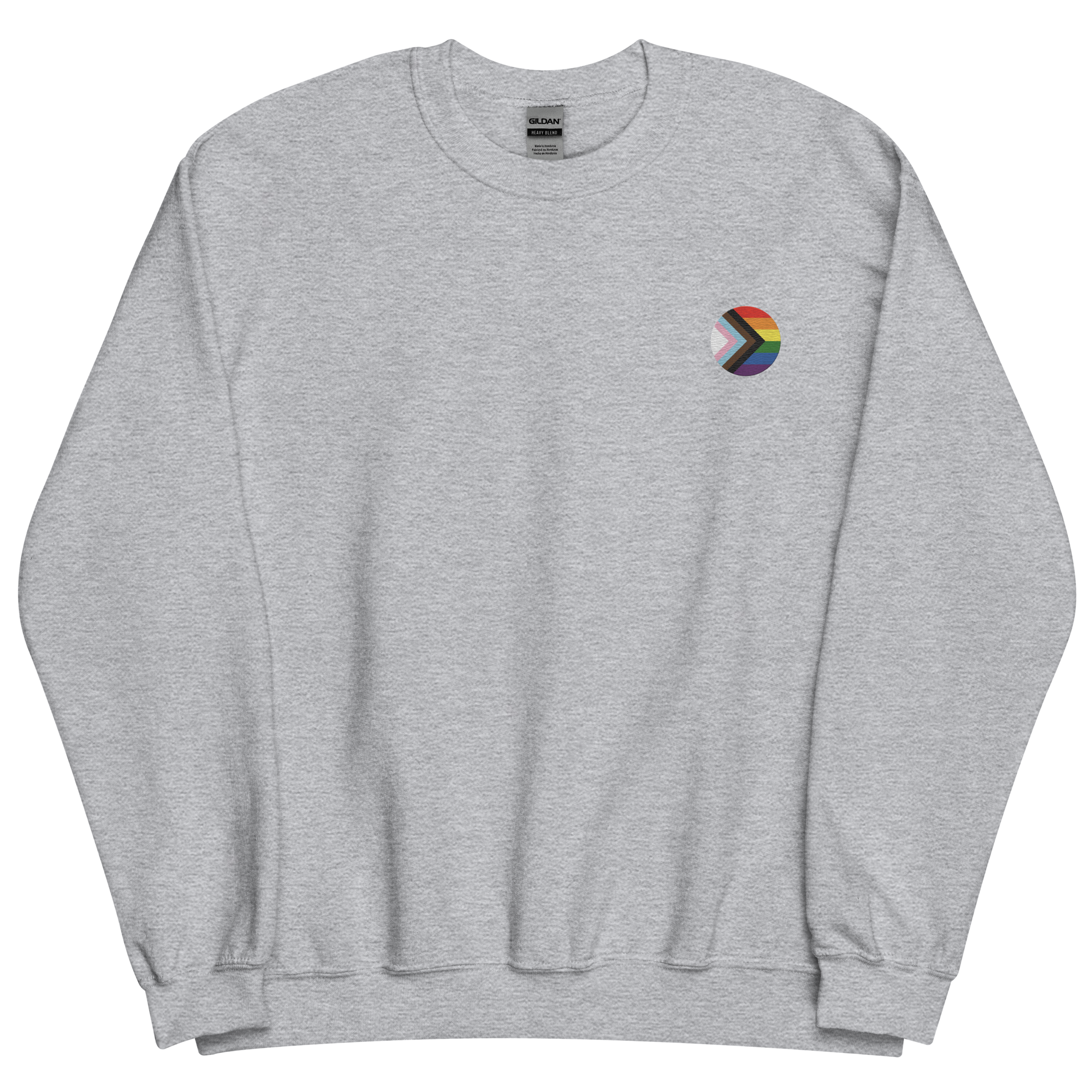 Pride Progress Flag Embroidered Circle Sweatshirt: Celebratory LGBTQ+ Pride Design
