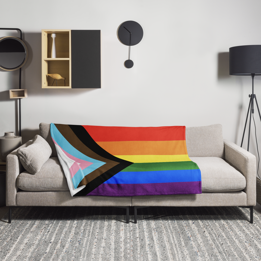Pride Progress Pride Throw Blanket: Cozy LGBTQ+ Decorative Print