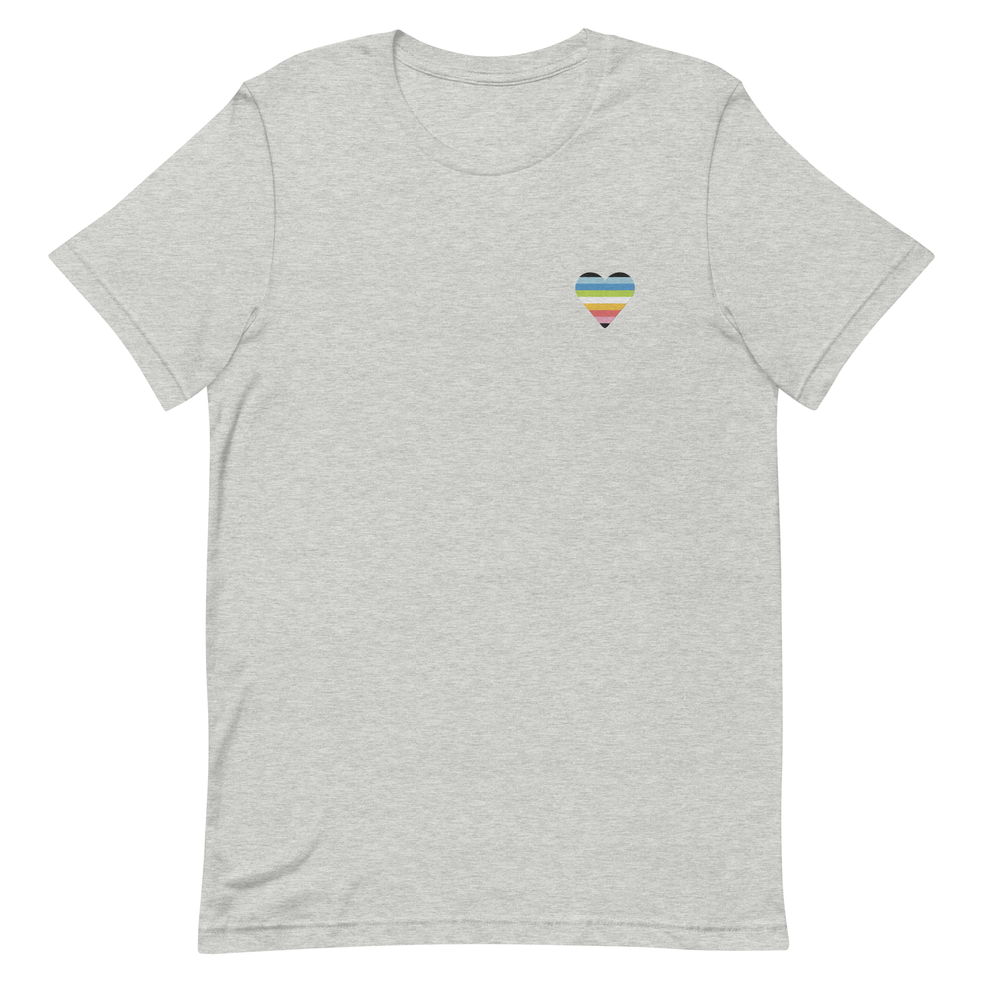 Queer Flag Embroidered Heart T-Shirt: Celebratory LGBTQ+ Pride Design