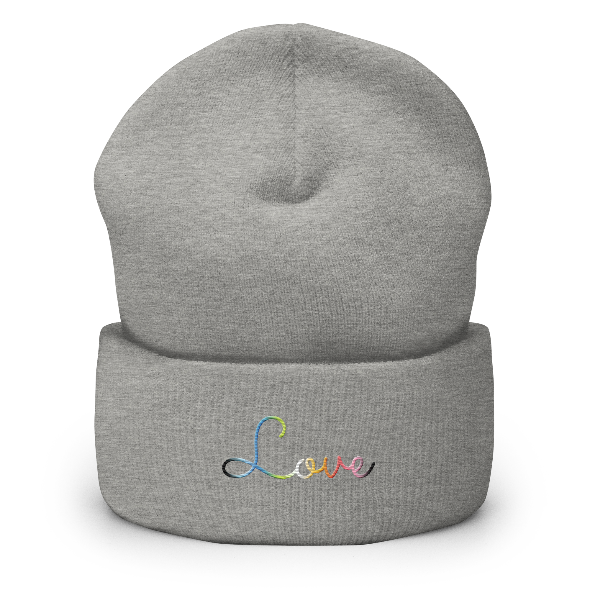 Queer Love Script Beanie: Ellegantly Embroidered Pride Hat
