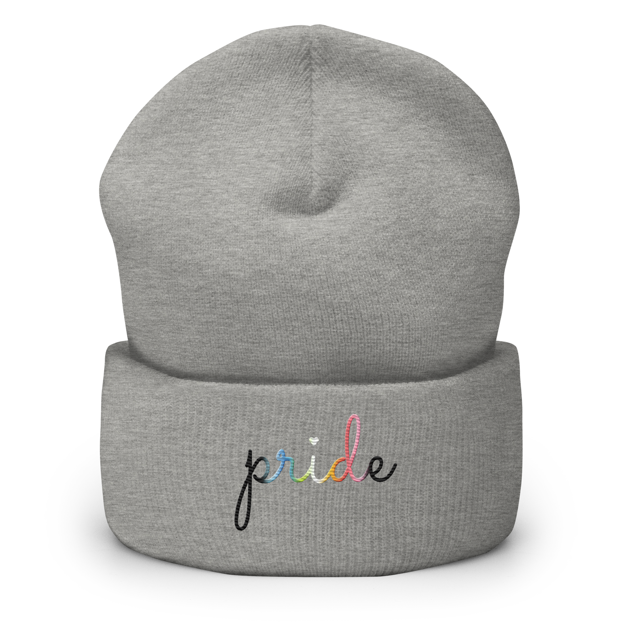 Queer Pride Beanie: Cursive 'Pride' in Gradient Colors