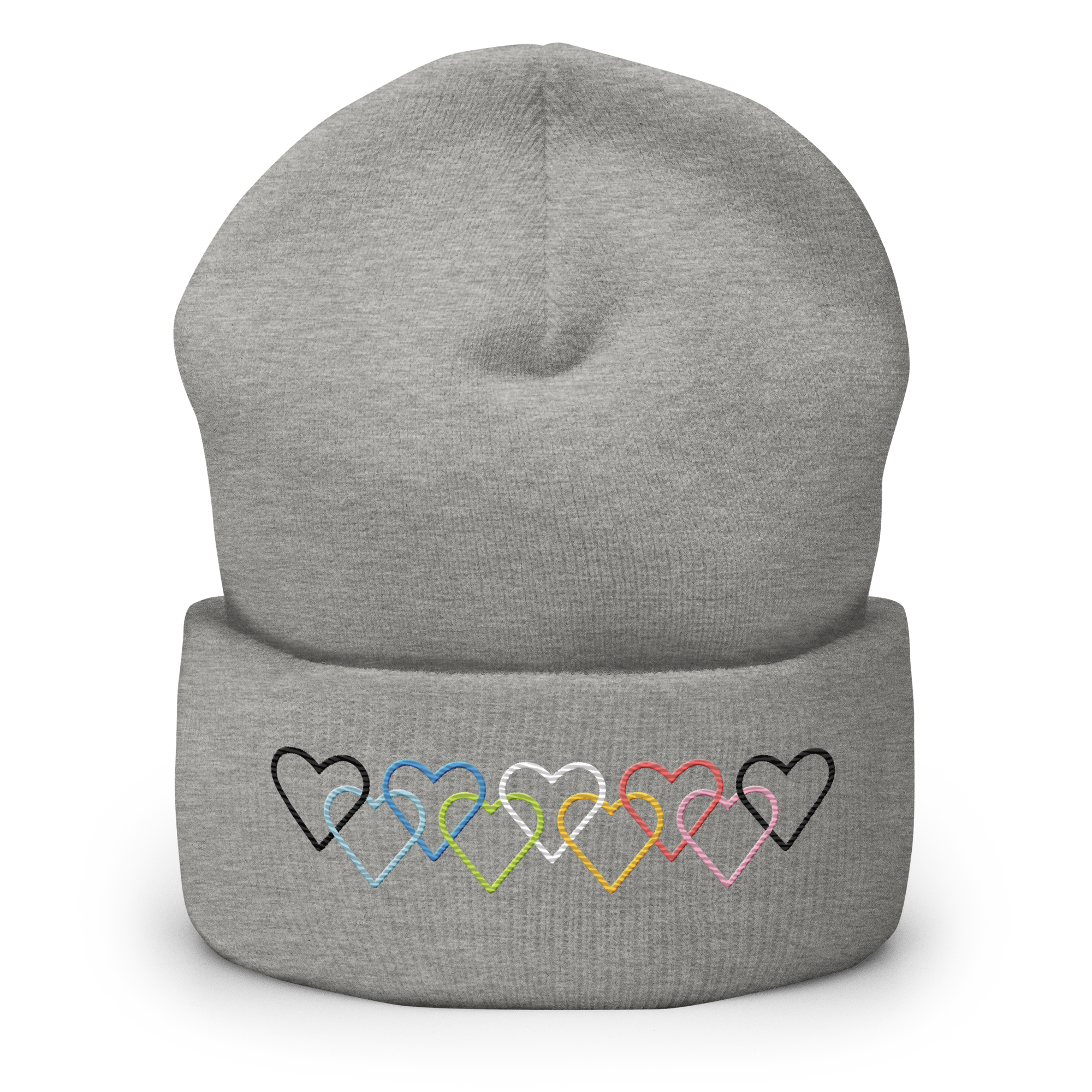 Queer Pride Beanie: Interlaced Heart Outlines Embroidered Hat