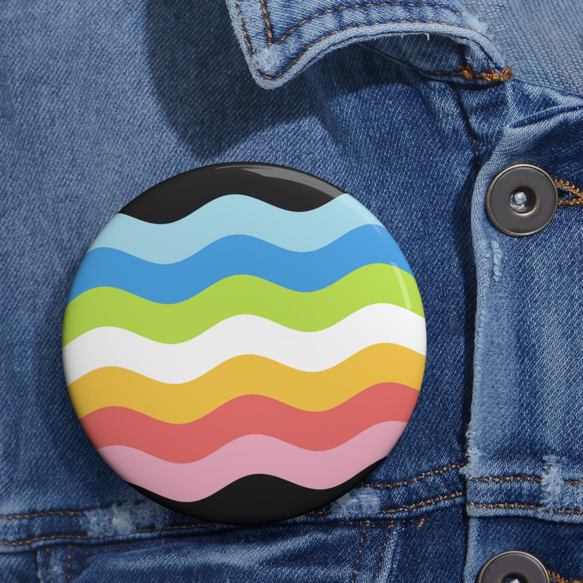 Queer Pride Flag Pin: Round Button with Wavey Design