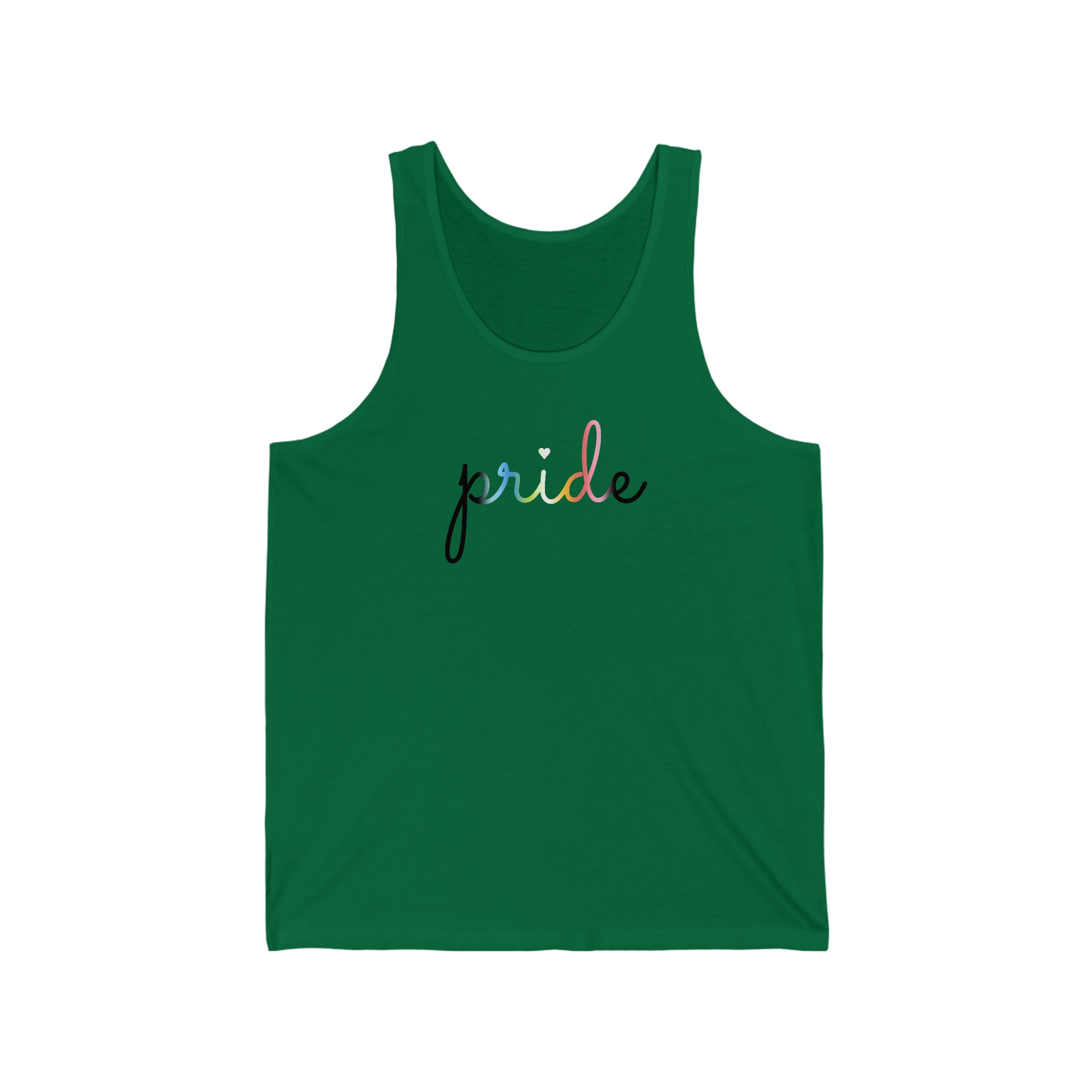 Queer Pride Tank-Top: Flowing Cursive 'Pride' in Gradient Hues