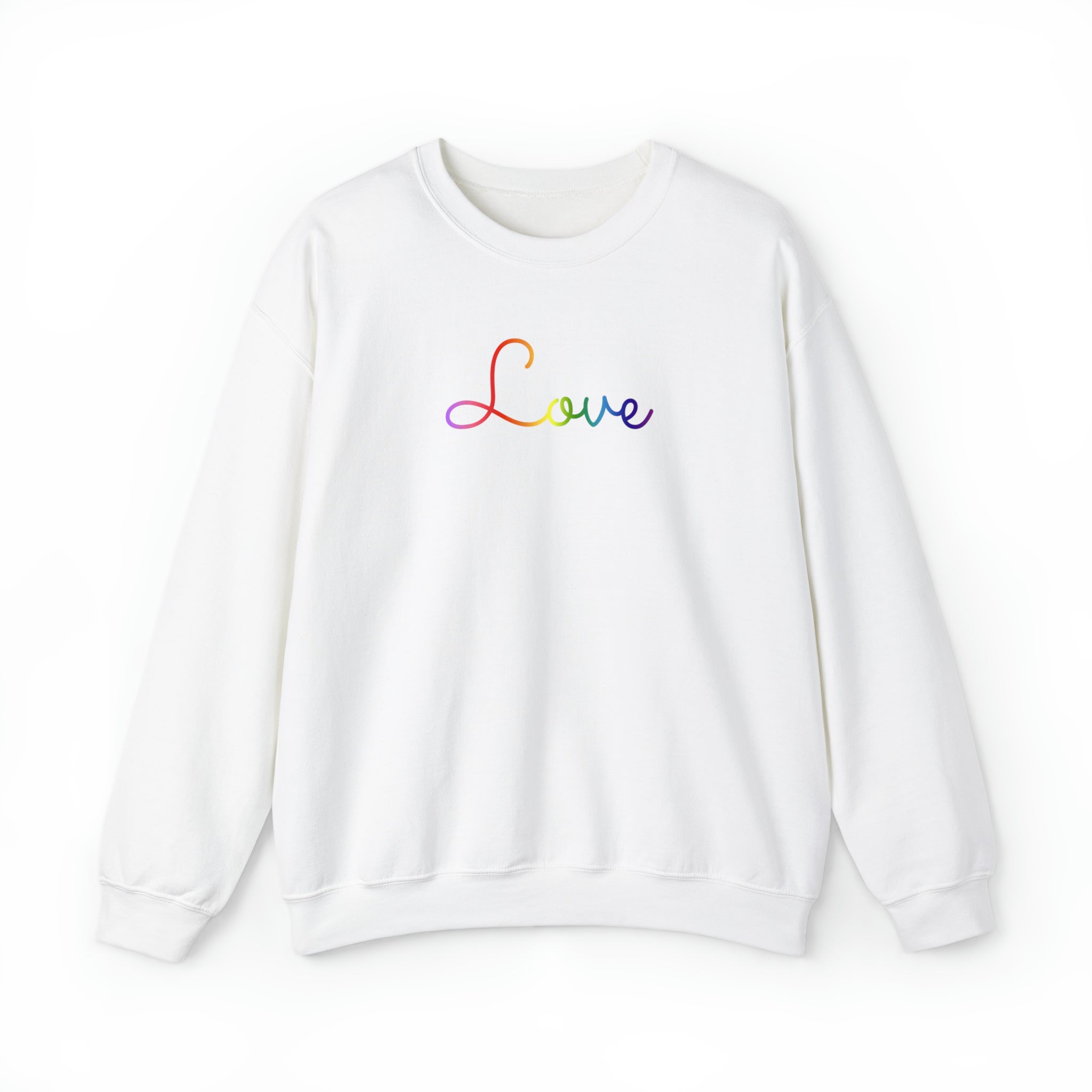 Rainbow Love Script Sweatshirt: Subtly Elegant Pride Sweater