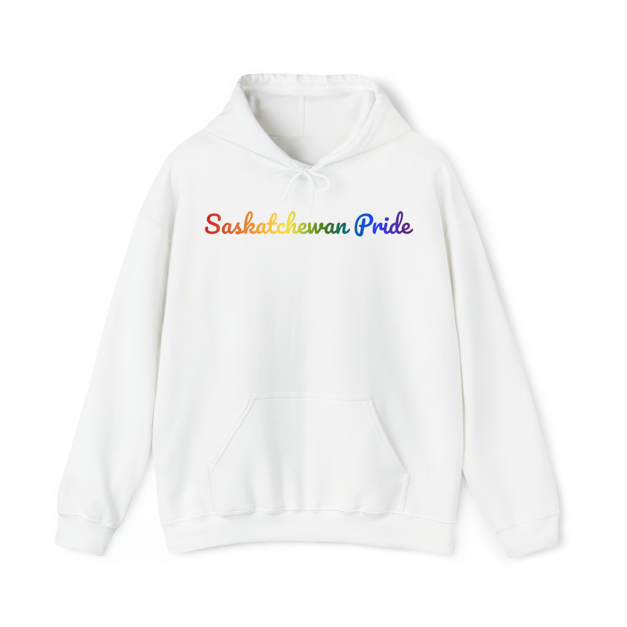 Saskatchewan Pride Hoodie: Flowing Cursive Design with LGBTQ+ Gradient