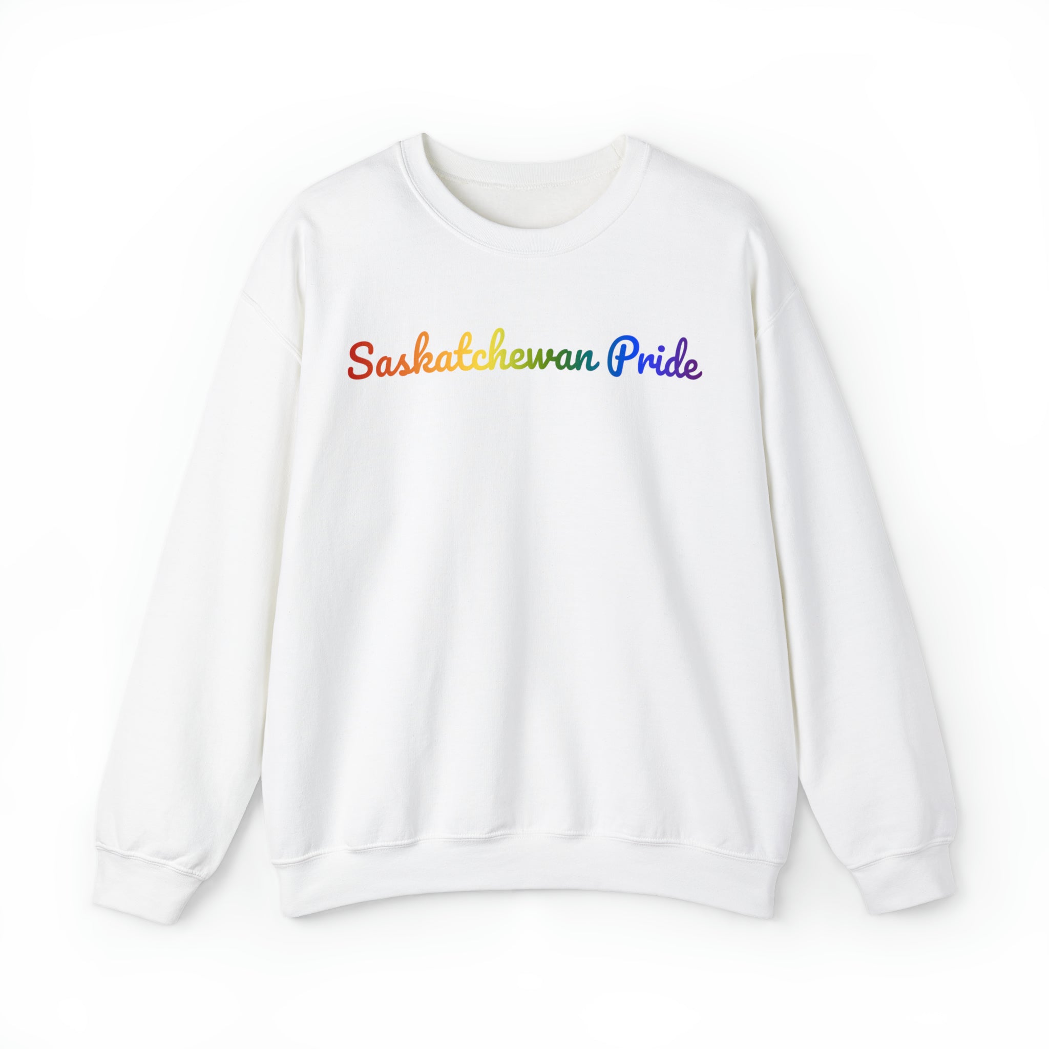 Saskatchewan Pride Sweatshirt: Flowing Cursive Design with LGBTQ+ Gradient