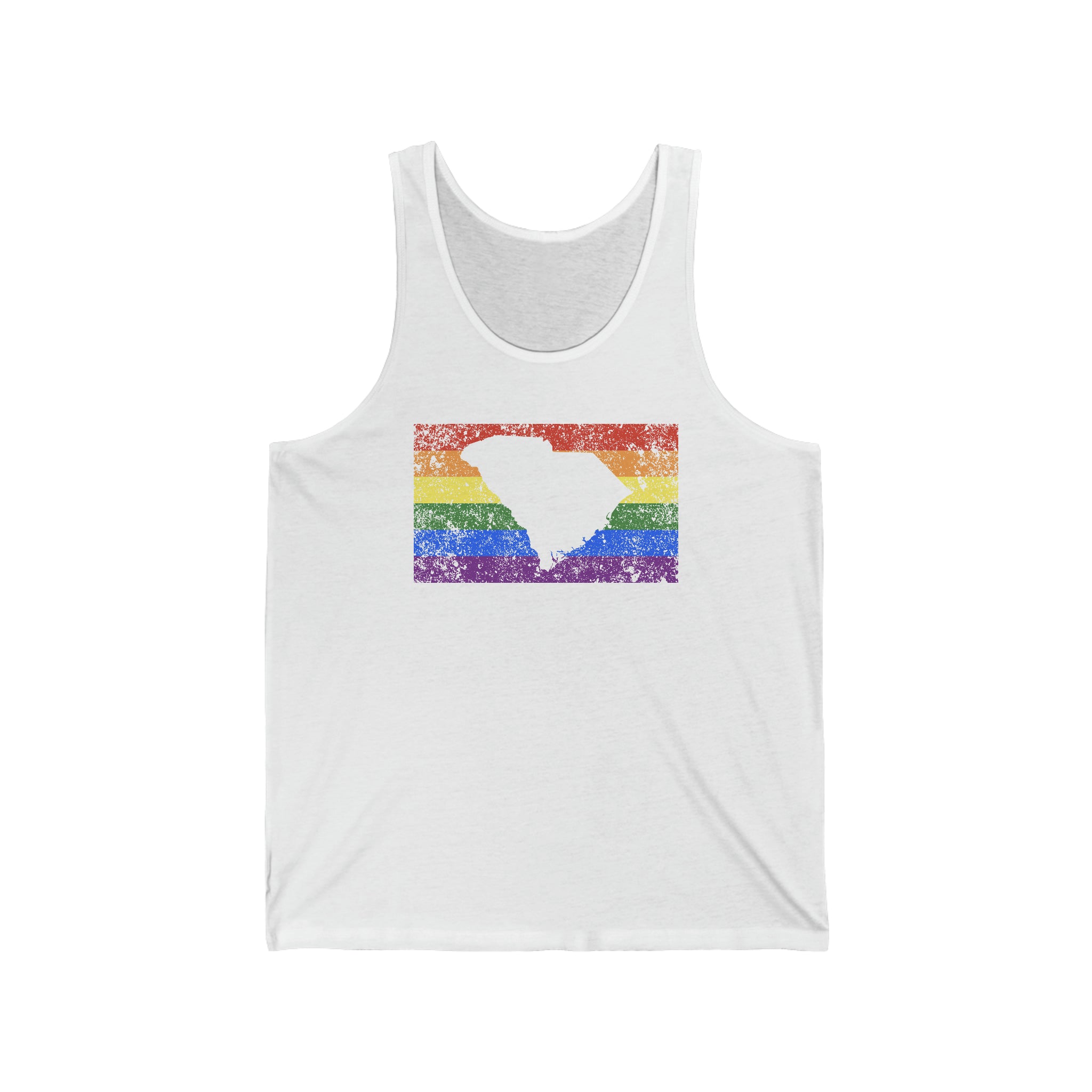 South Carolina Pride Flag Tank: Rainbow LGBTQ+ State Silhouette Distressed Tank-Top