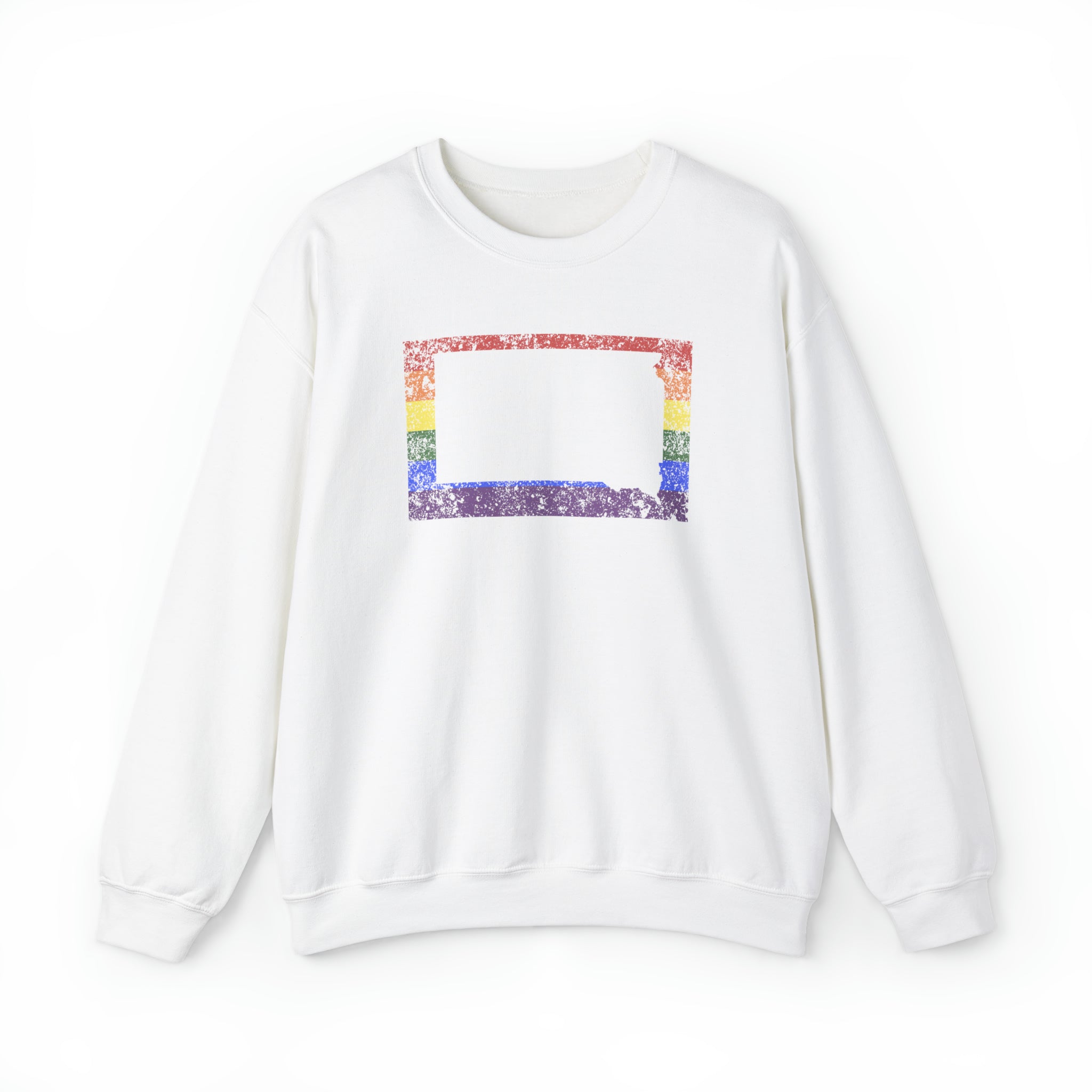 South Dakota Pride Flag Sweater: Rainbow LGBTQ+ State Silhouette Distressed Sweatshirt