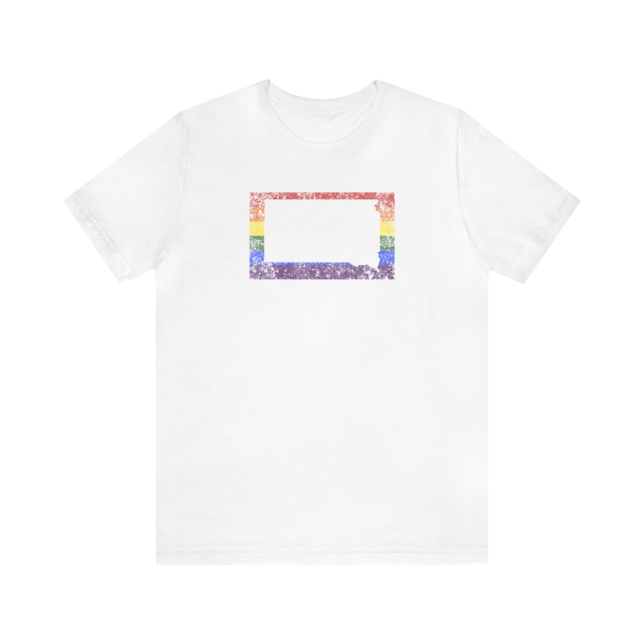 South Dakota Pride Flag Tee: Rainbow LGBTQ+ State Silhouette Distressed Shirt