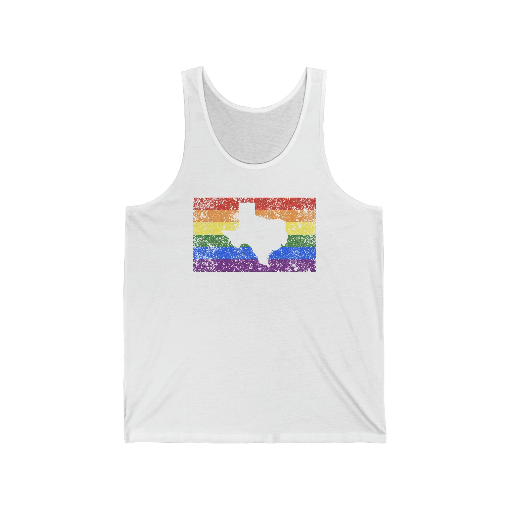Texas Pride Flag Tank: Rainbow LGBTQ+ State Silhouette Distressed Tank-Top