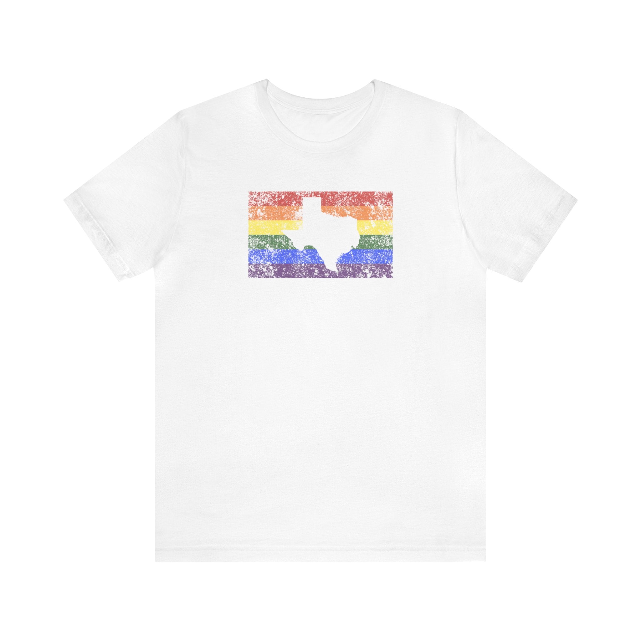 Texas Pride Flag Tee: Rainbow LGBTQ+ State Silhouette Distressed Shirt