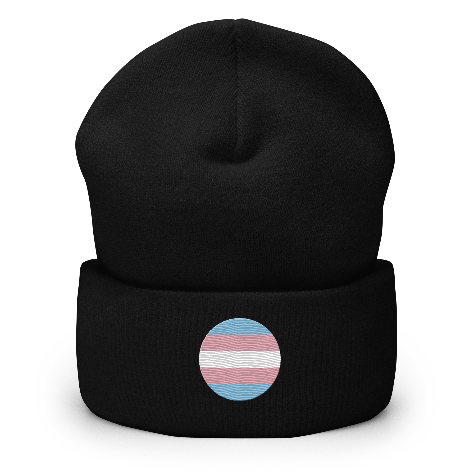 Transgender Flag Embroidered Circle Beanie: Celebratory LGBTQ+ Pride Design