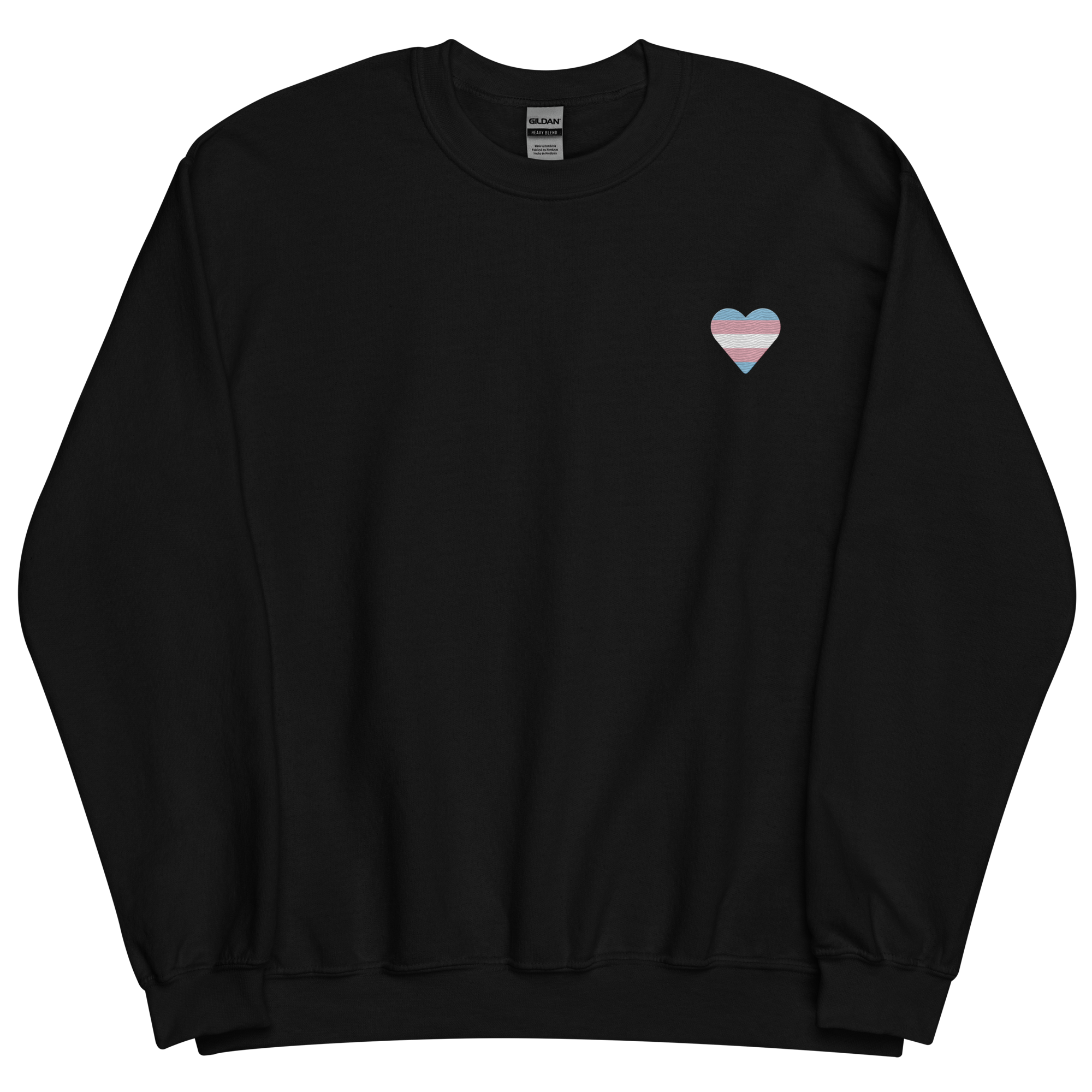 Transgender Flag Embroidered Heart Sweater: Celebratory LGBTQ+ Pride Design