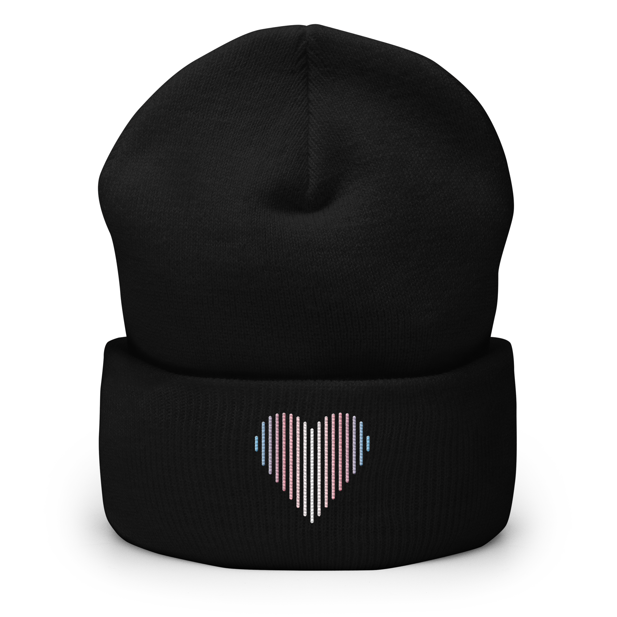Transgender Heart Lines Beanie: Embroidered Pride Gradient Hat