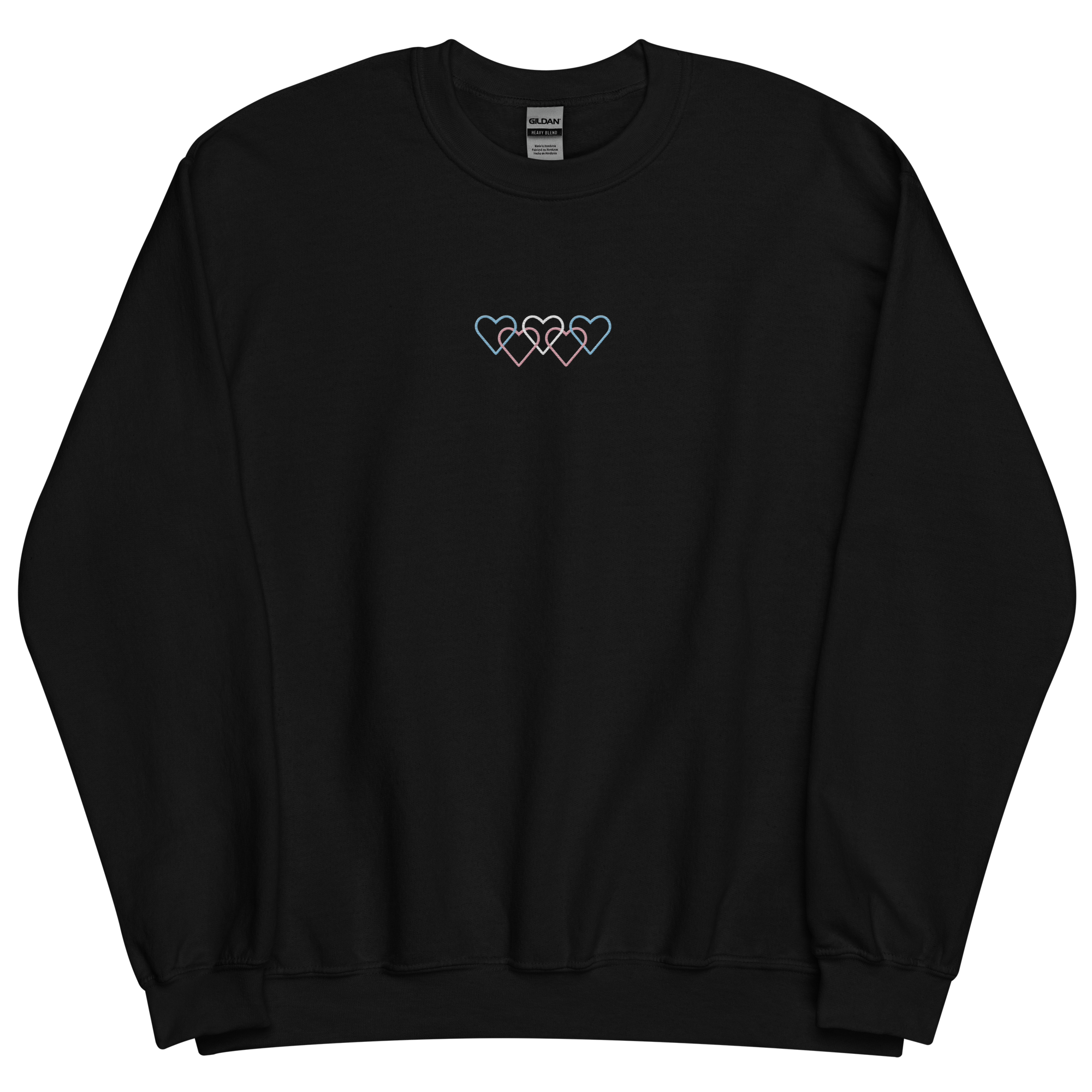 Transgender Pride Sweatshirt: Interlaced Heart Outlines Embroidered Sweater