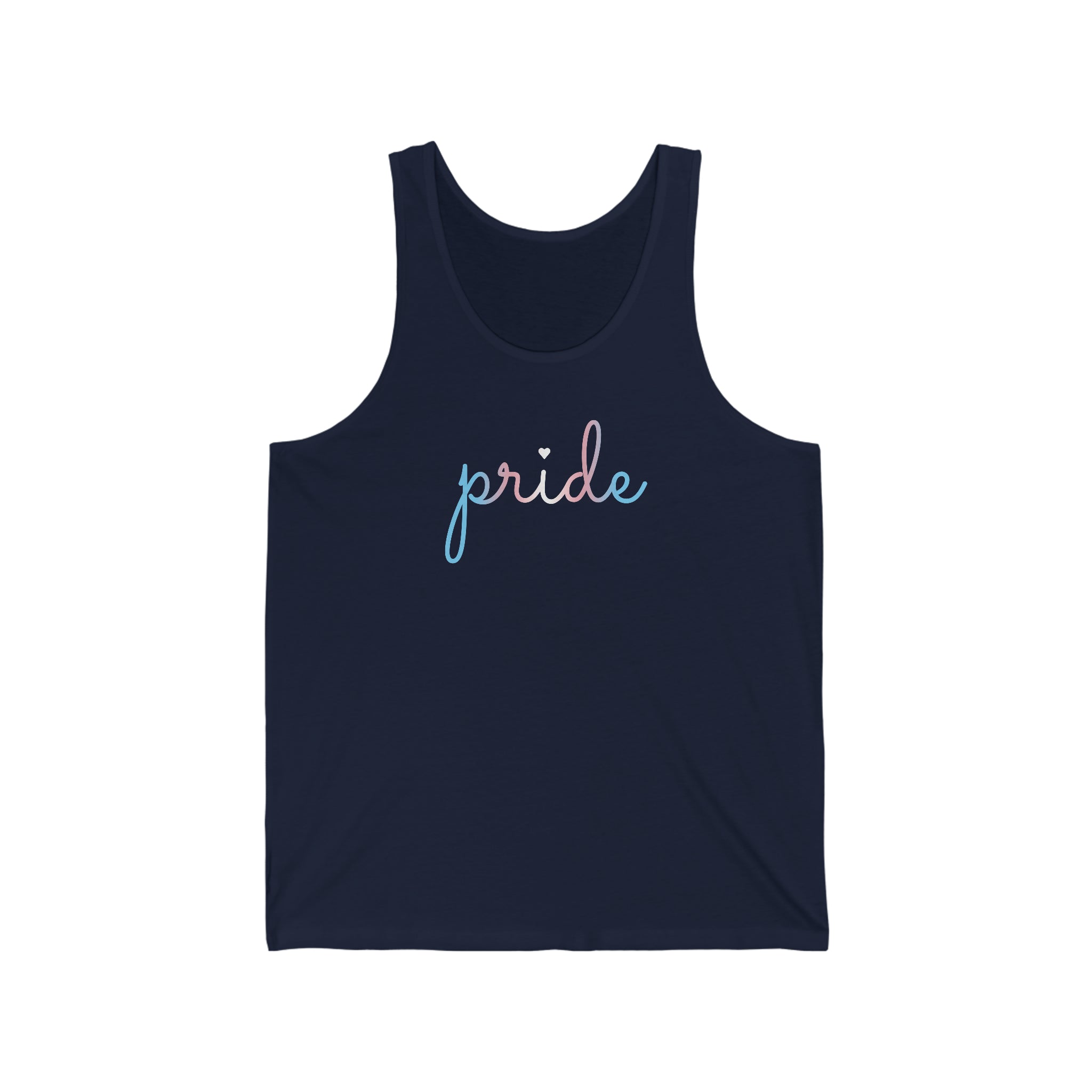 Transgender Pride Tank-Top: Flowing Cursive 'Pride' in Gradient Hues