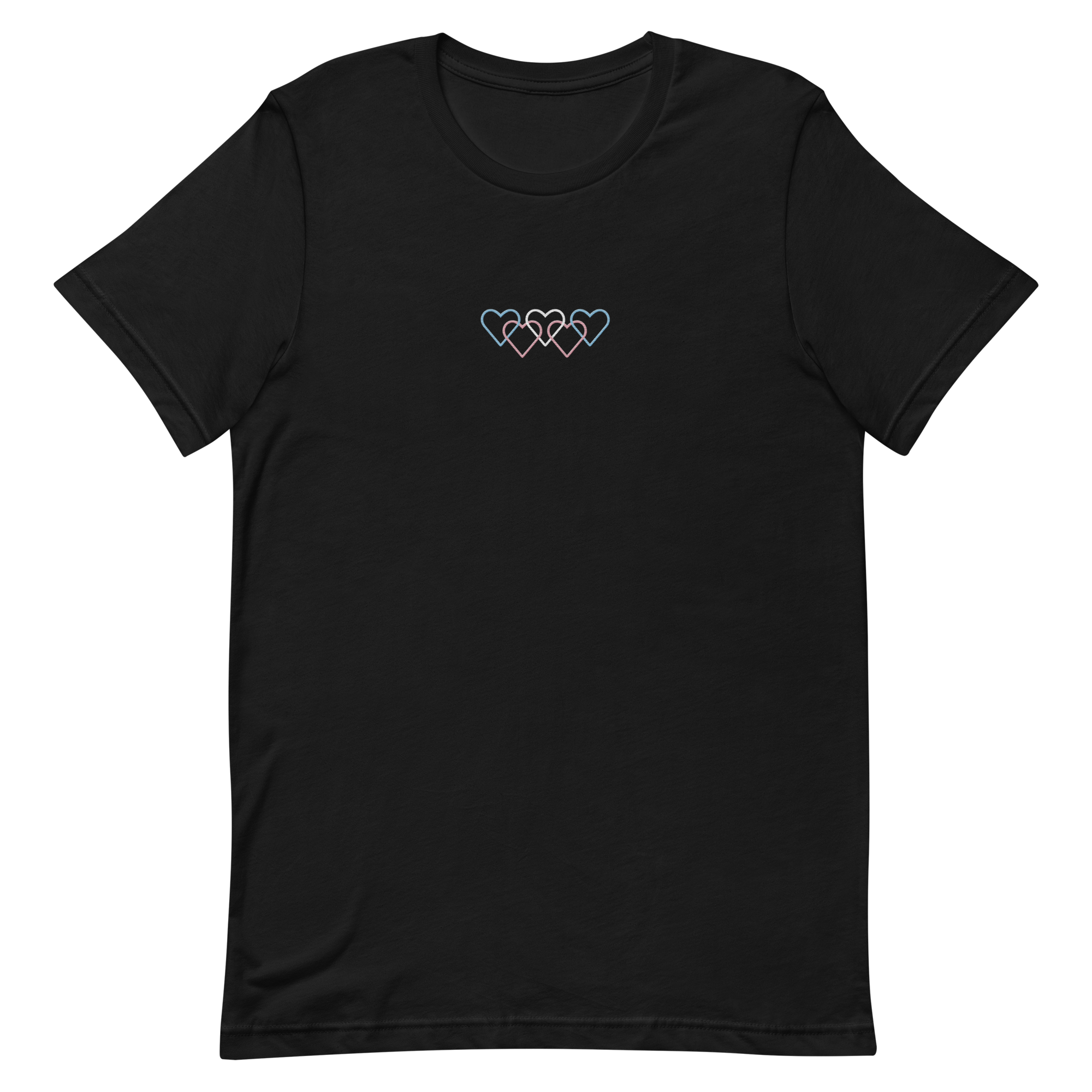 Transgender Pride Tee: Interlaced Heart Outlines Embroidered T-Shirt