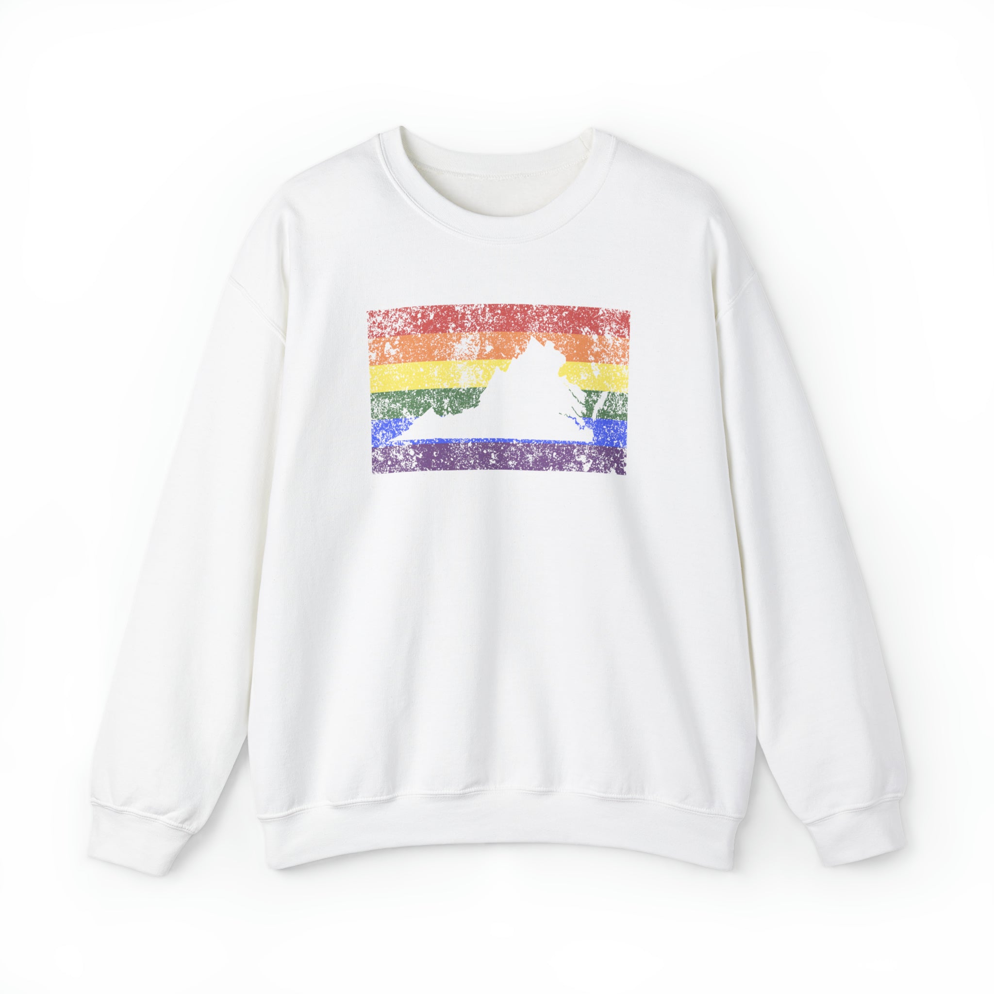 Virginia Pride Flag Sweater: Rainbow LGBTQ+ State Silhouette Distressed Sweatshirt