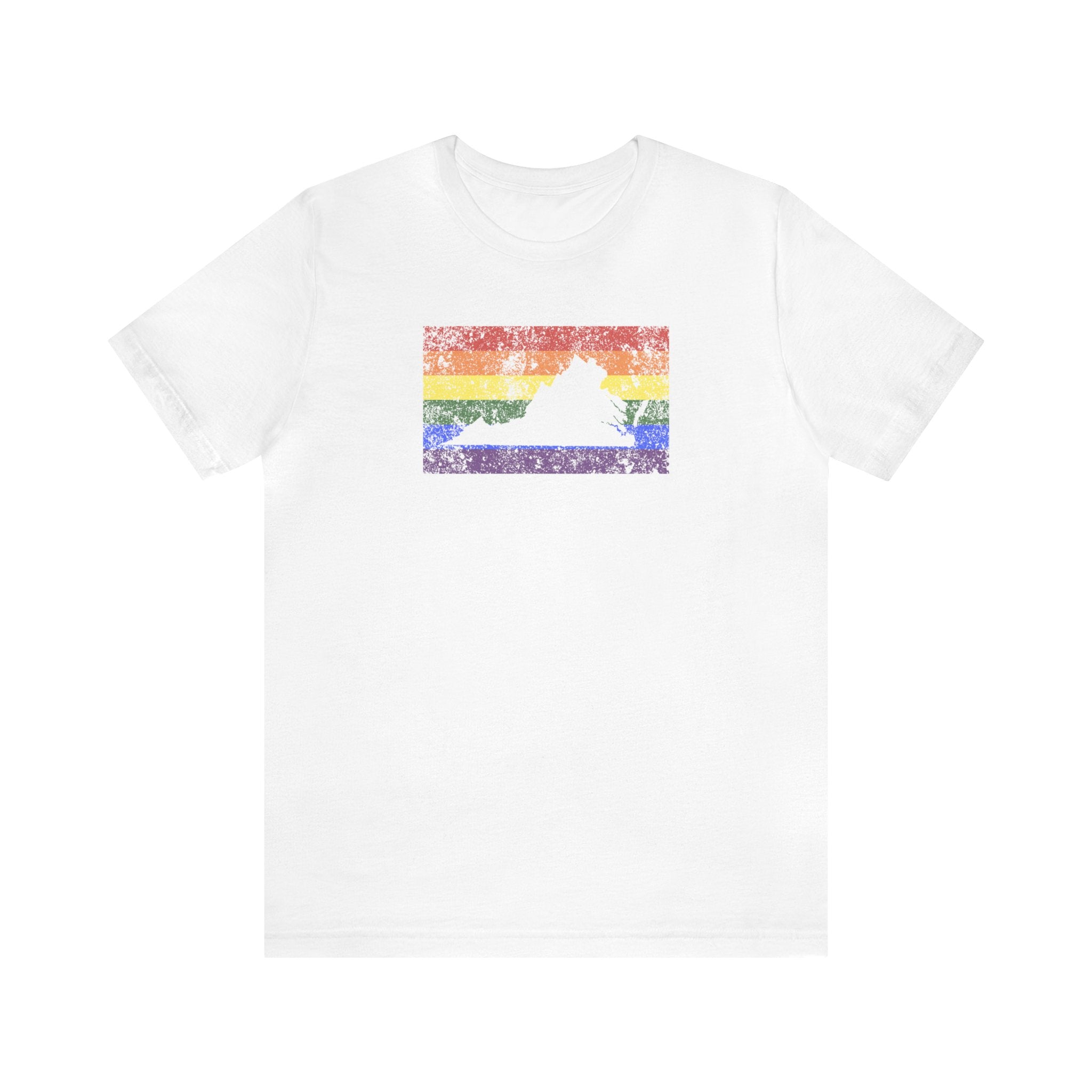 Virginia Pride Flag Tee: Rainbow LGBTQ+ State Silhouette Distressed Shirt