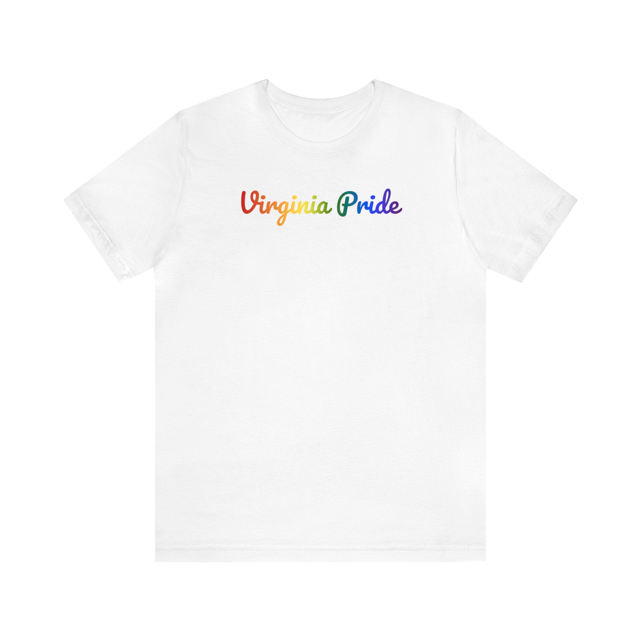 Virginia Pride T-Shirt: Flowing Cursive Design with LGBTQ+ Gradient