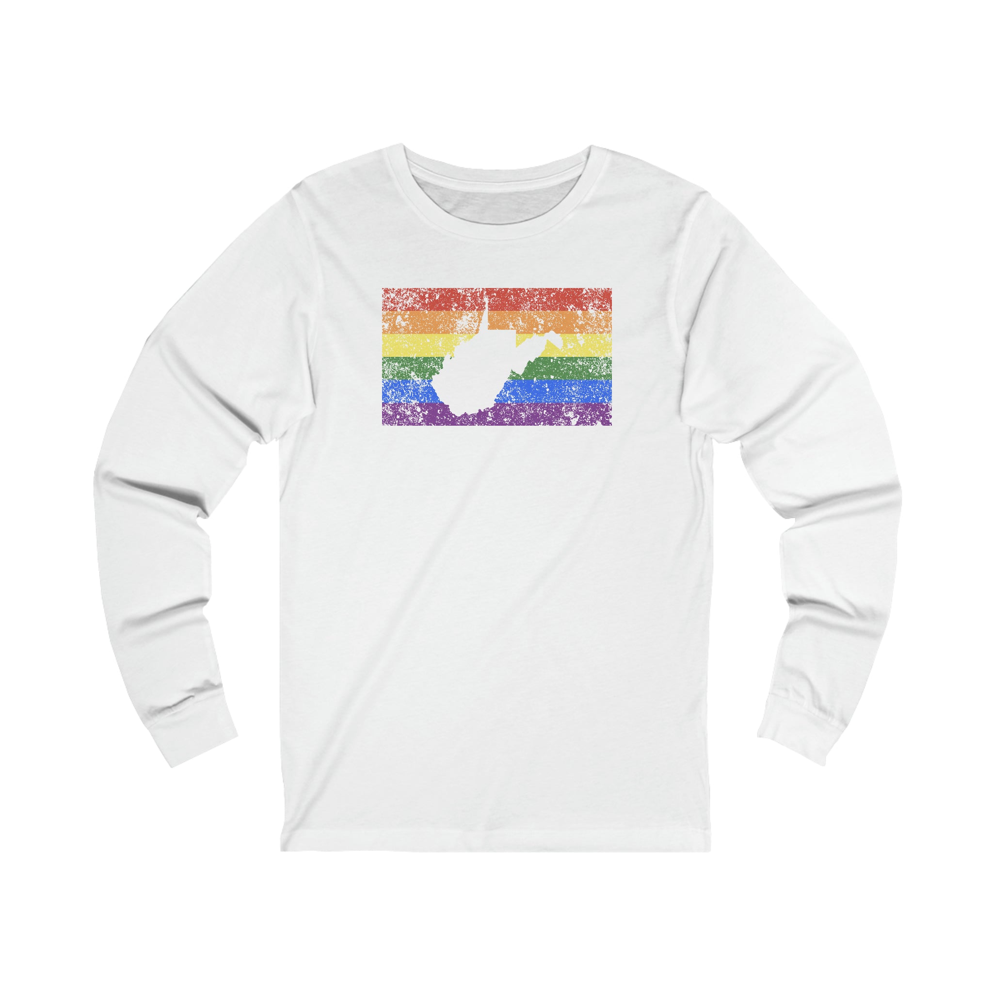 West Virginia Pride Flag Long Sleeve Tee: Rainbow LGBTQ+ State Silhouette Distressed Long Sleeve T-Shirt