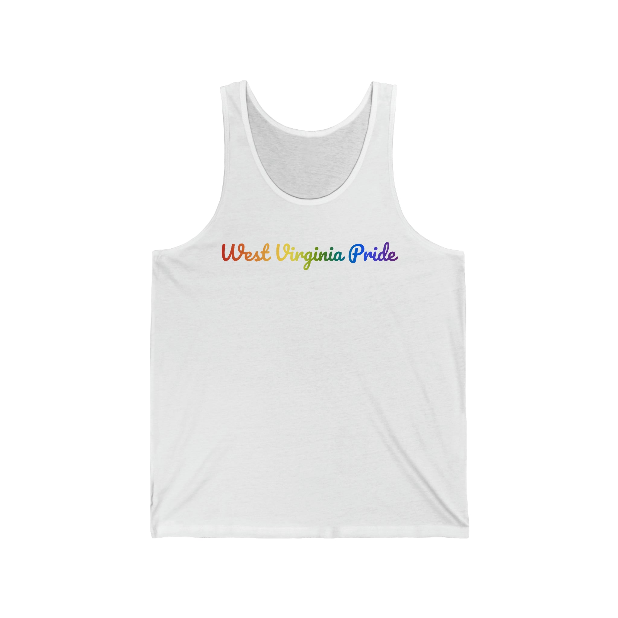 West Virginia Pride Tank Top: Flowing Cursive Design with LGBTQ+ Gradient
