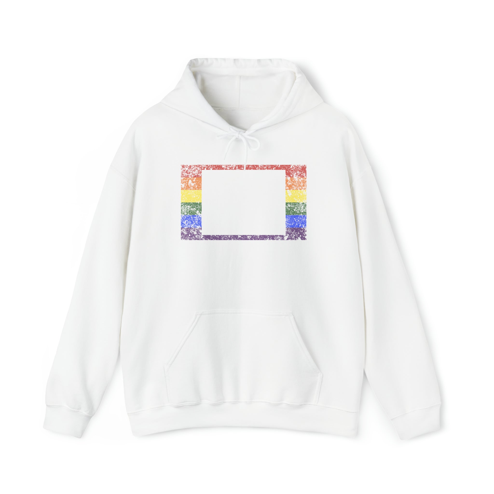 Wyoming Pride Flag Hoodie: Rainbow LGBTQ+ State Silhouette Distressed Hooded Sweatshirt