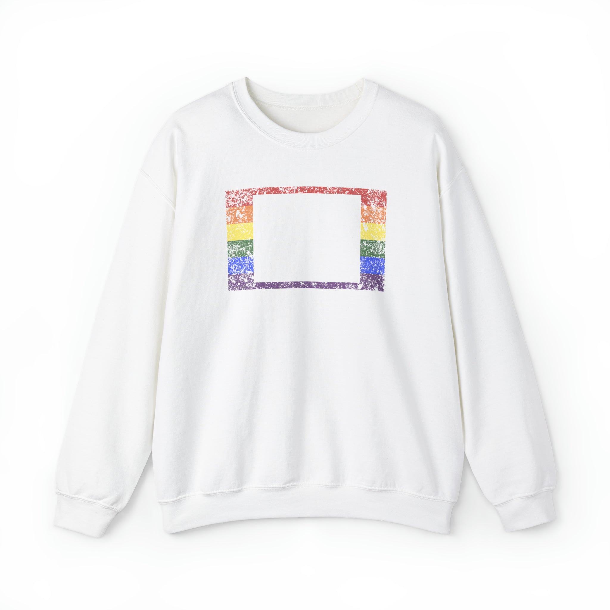 Wyoming Pride Flag Sweater: Rainbow LGBTQ+ State Silhouette Distressed Sweatshirt